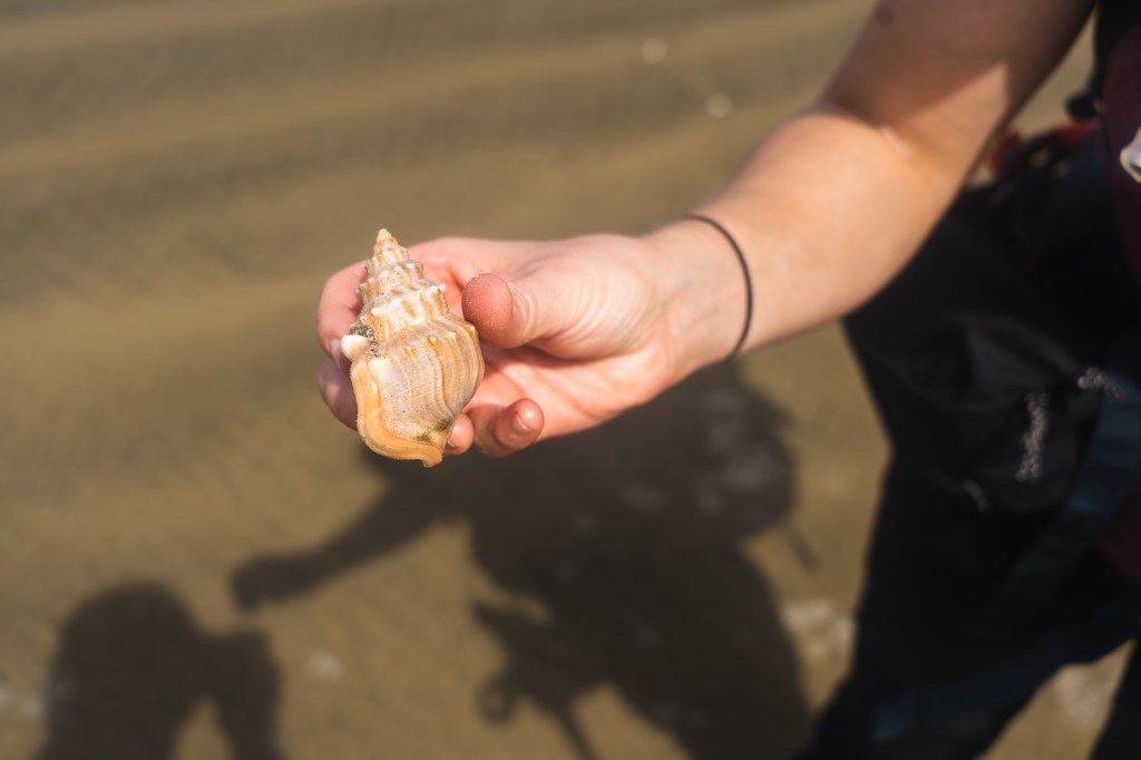 Departure from the second camp at km 40 around 8:15. Back and legs a little sore but the motivation is there. A long day awaits us: again almost 30km of beach… This time we set ourselves the objective of taking more breaks to avoid ending up in the same state as yesterday. That is to say almost literally on the knees