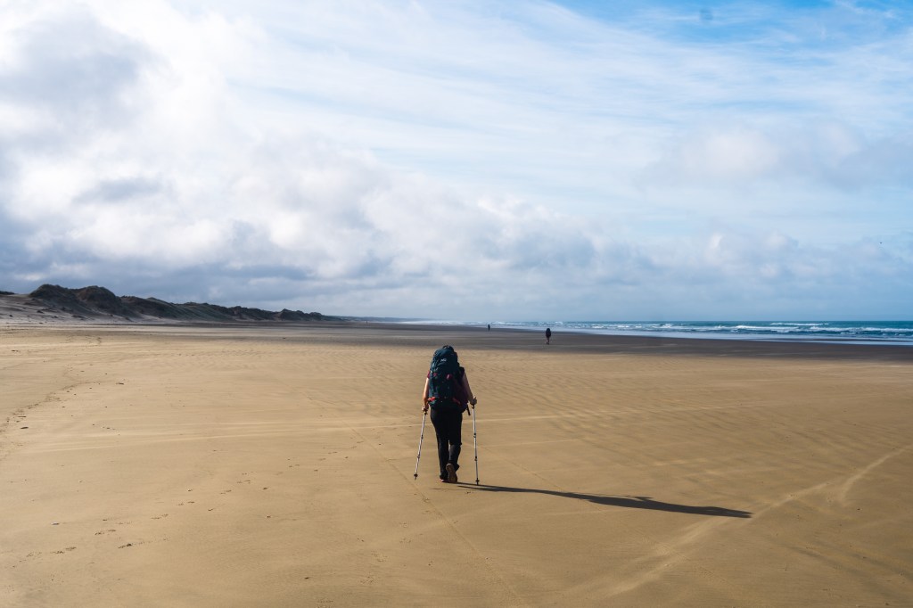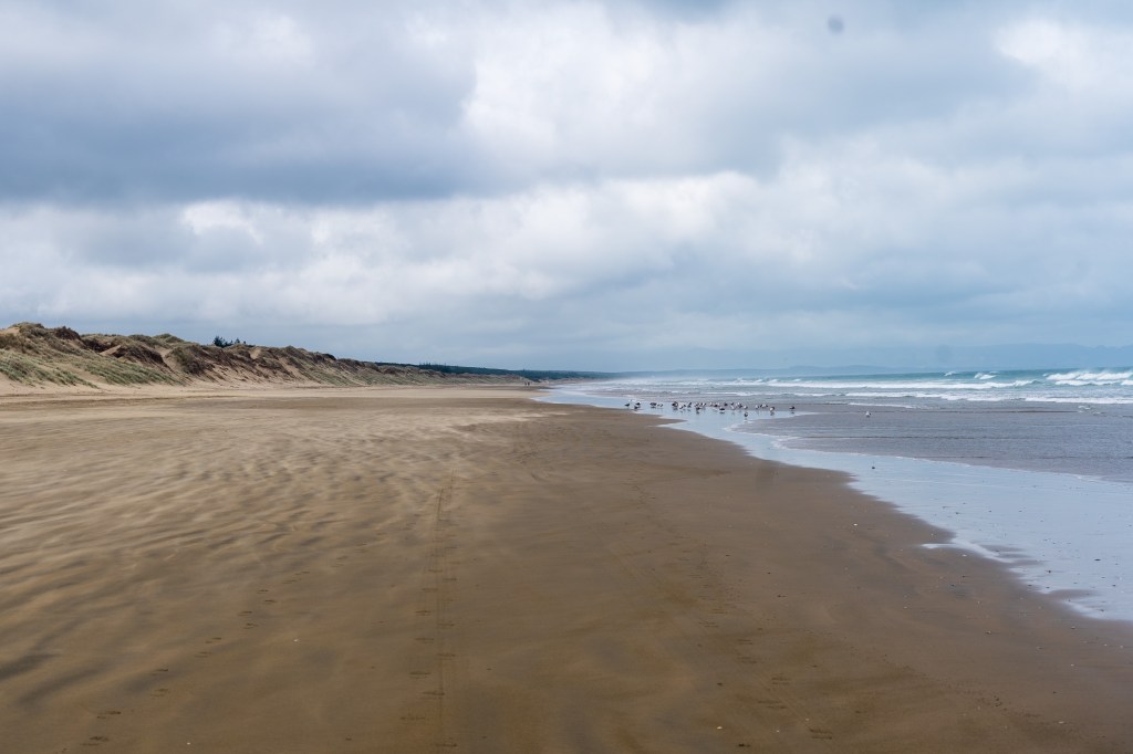 À 14:00, après 1h30 de pause, on décide finalement que Mag’ va faire du stop pour Kaitaia et que je terminerai seul la plage. La plage aura malheureusement eu raison d’elle. Nous aurions pu rester sur place dans un camping mais il est annoncé de la pluie pendant toute la journée du lendemain et il serait encore moins fun d’être sur la plage à ce moment-là. Et de toute façon Mag’ ne ratera rien au niveau du paysage car il ne changera pas jusqu’à la fin. On se retrouvera le lendemain à l’hostel de Kaitaia :). Et comme ça, elle pourra avoir 2 jours entiers de repos pour la suite.
