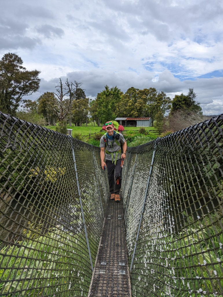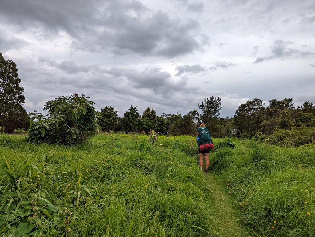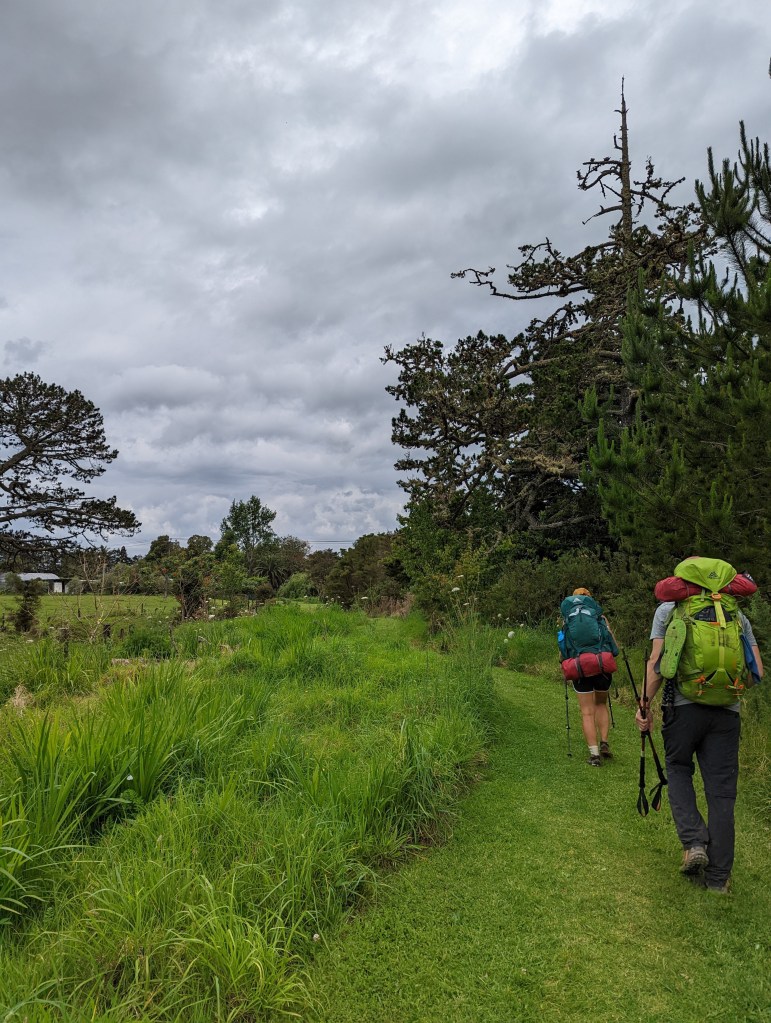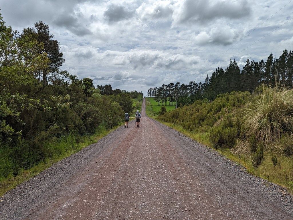 Après quelques minutes, je les rejoins finalement et je vois les filles sur la terrasse avec les propriétaires et quelques boissons. Les hôtes sont adorables et généreux. Ils m’offrent aussi à boire dont une sorte de sirop de citron incroyable et aussi du Toblerone haha. Le mari travaille pour la restauration et protection des kiwis dans la région ! Après une pause bien plus longue que prévue de 45min, on reprend notre chemin avec regret.