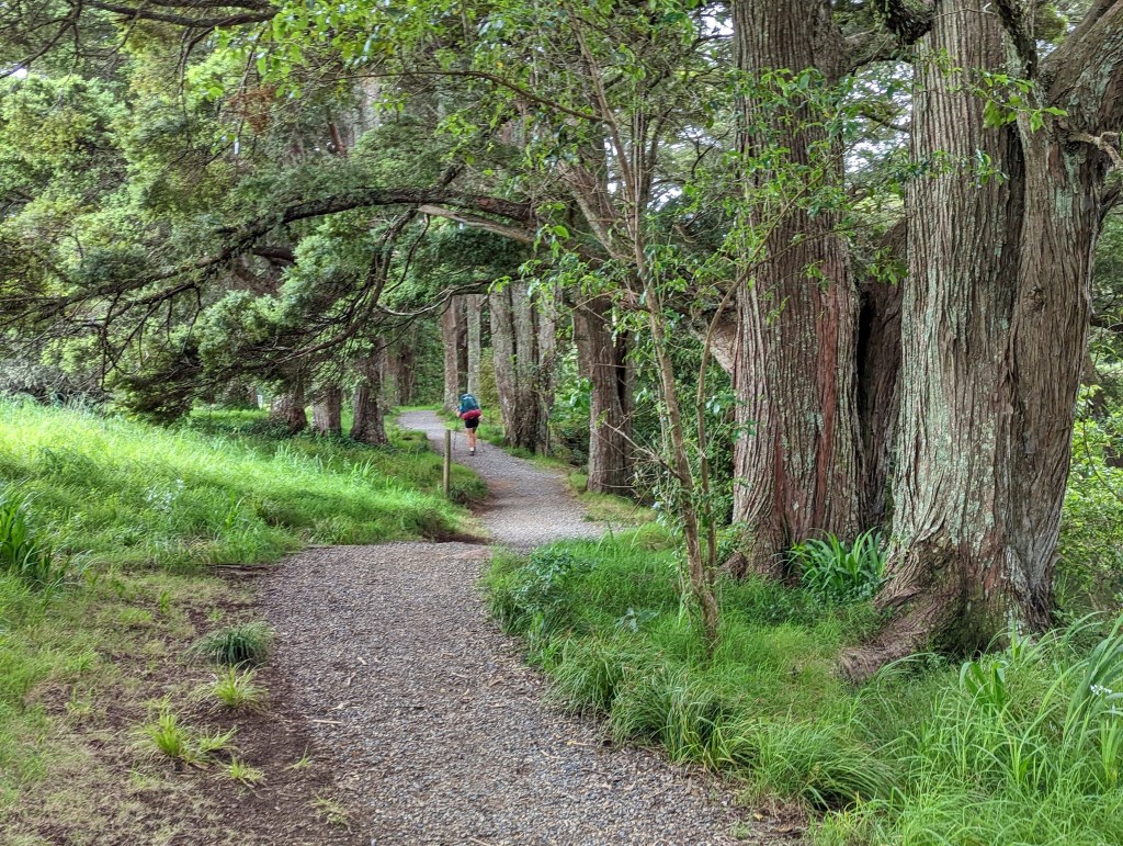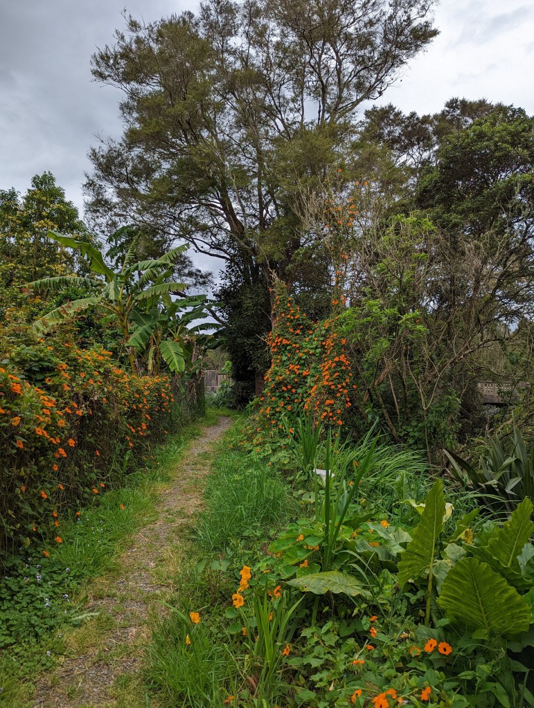 14:10 here we go again, we are almost at the end of today’s hike. The route changes as you get closer to the city and becomes absolutely magnificent when it begins to follow the Kerikeri River. Its maintenance is perfect. So much so that we even come across a mower driven by a kid not older than 10-12 mmmh.