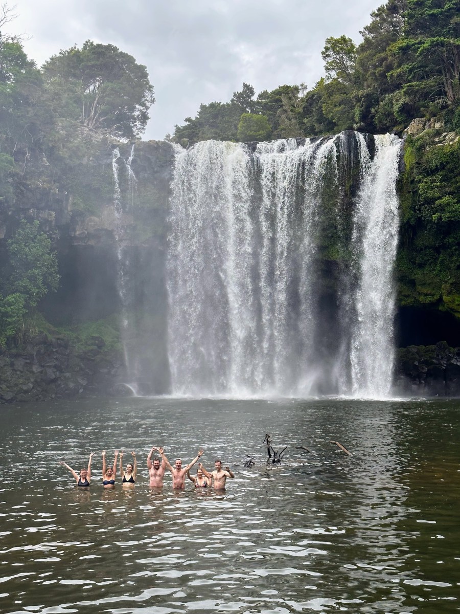 16:00 arrivée à la Rainbow Waterfall. Moment parfait pour un plouf dans l’eau froide. C’est un lieu magnifique même s’il manque malheureusement le soleil pour nous montrer l’origine du nom de la chute. On y reste une petite demi heure avant de nous attaquer au dernier bout jusqu’au hostel de ce soir: La Honeheke Lodge.