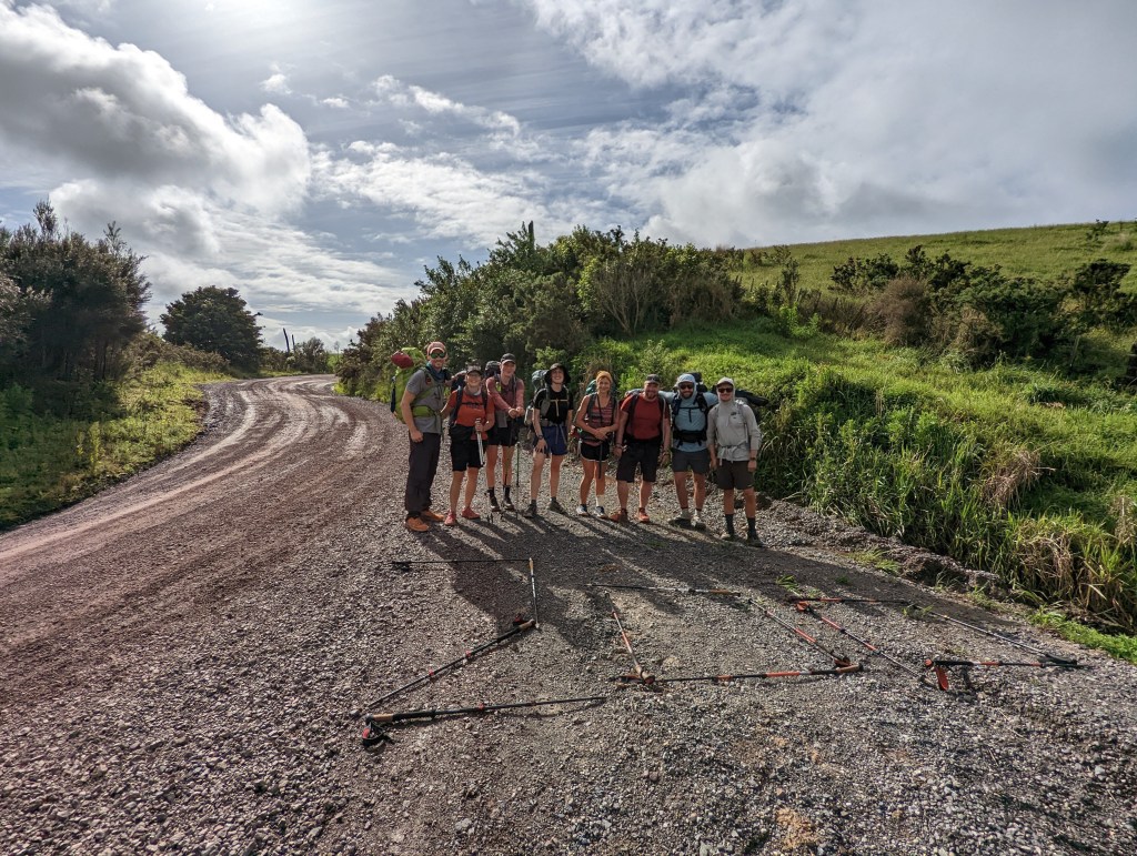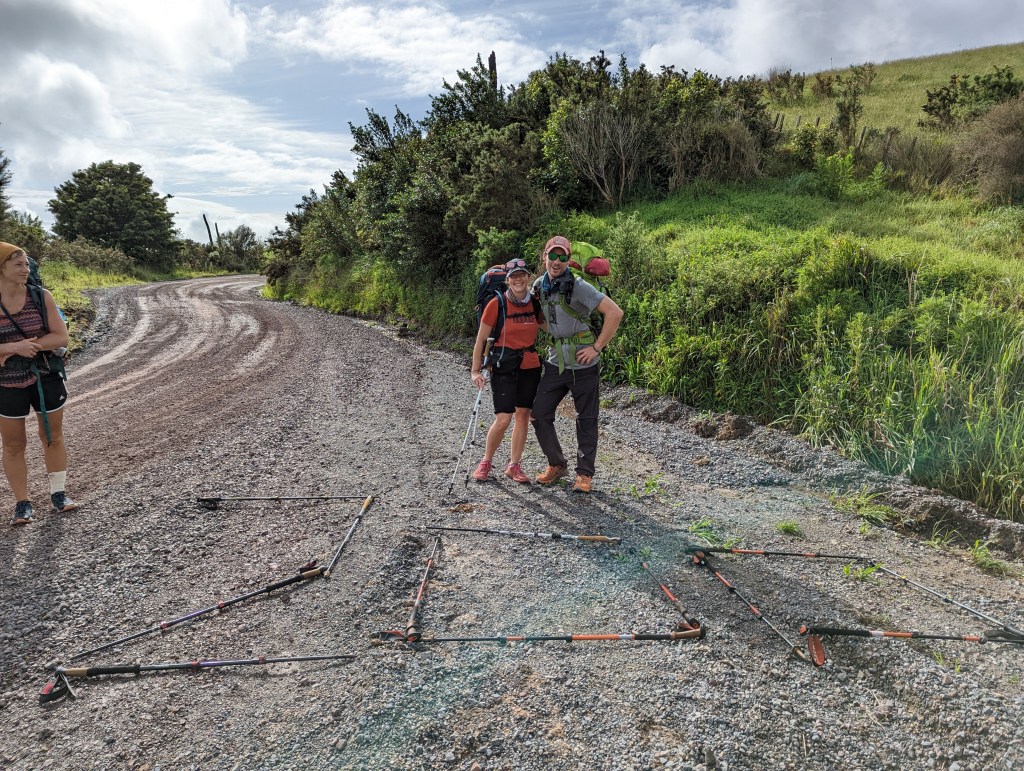 10:20 short break by the roadside. As we land, a lady approaches the house next to us and asks us if we are interested in tea or coffee because she has just made a pot. Mag’ is ecstatic ! And she follows the lady with Neele and Kat, the New Zealand girl who also does the TA.