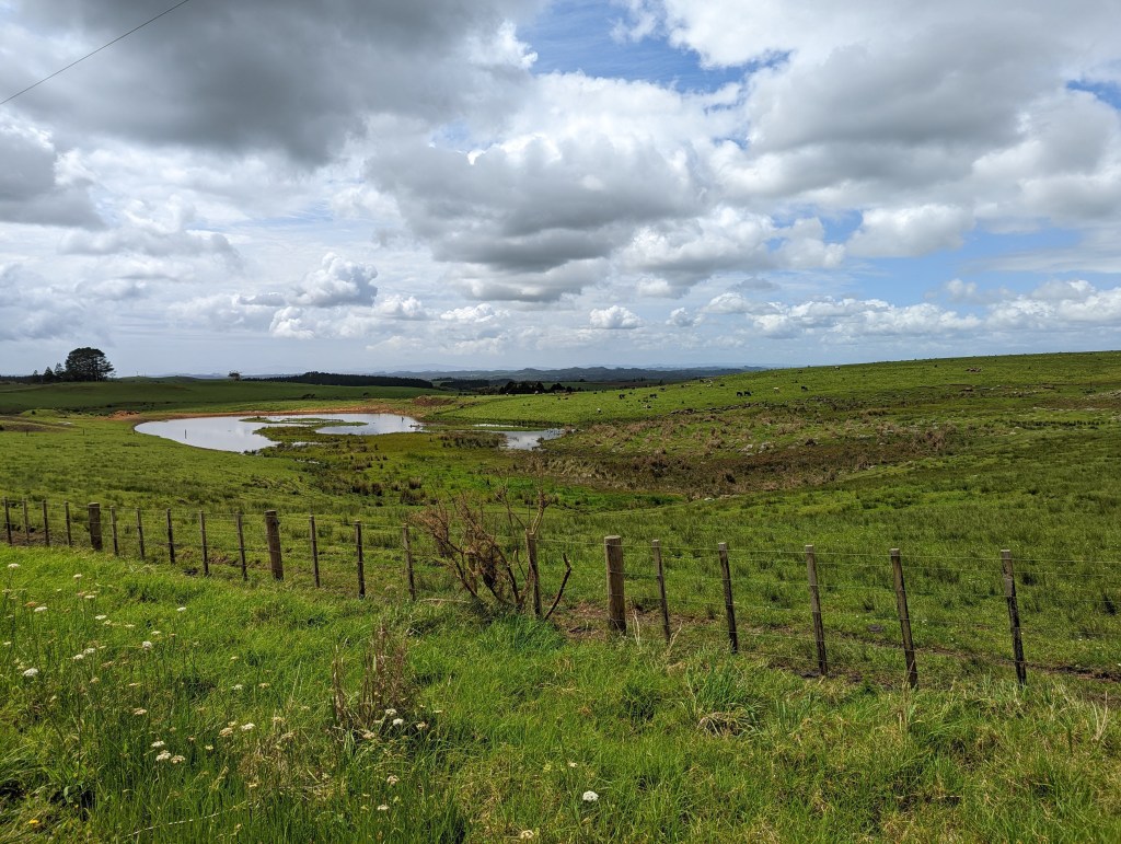 12:30 a short break of 10 min before continuing this time along the fences of many pastures. Unfortunately, the mud has not said its last word and we are forced to cross some small marshy areas. This mud is almost worse than that of the forest because it stinks like death. What a treat 🙂 But other than that, the walk is charming and the landscapes very nice.