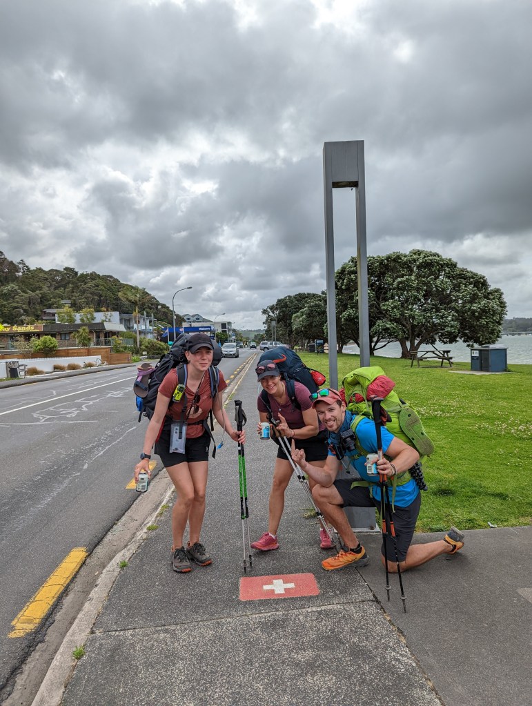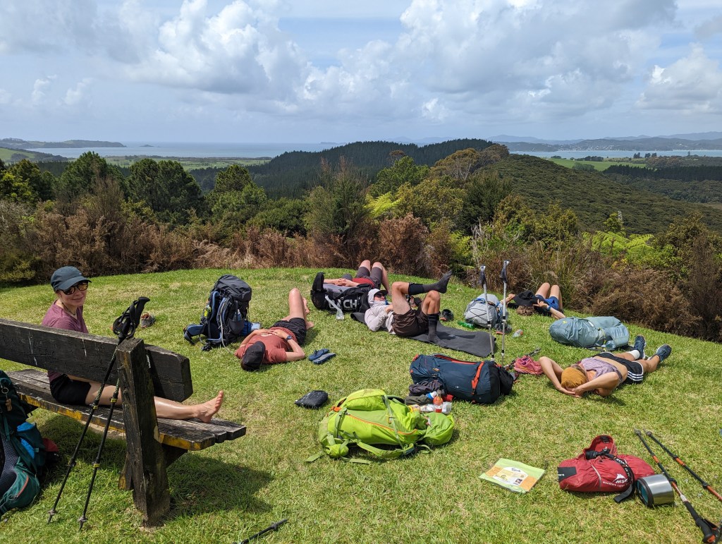 13:30 lunch break at the top of a small hill with a superb view of Paihia and the Bay of Islands. The sun hits hard but it feels great ! We take the opportunity to hang out and rest in the grass for a while.