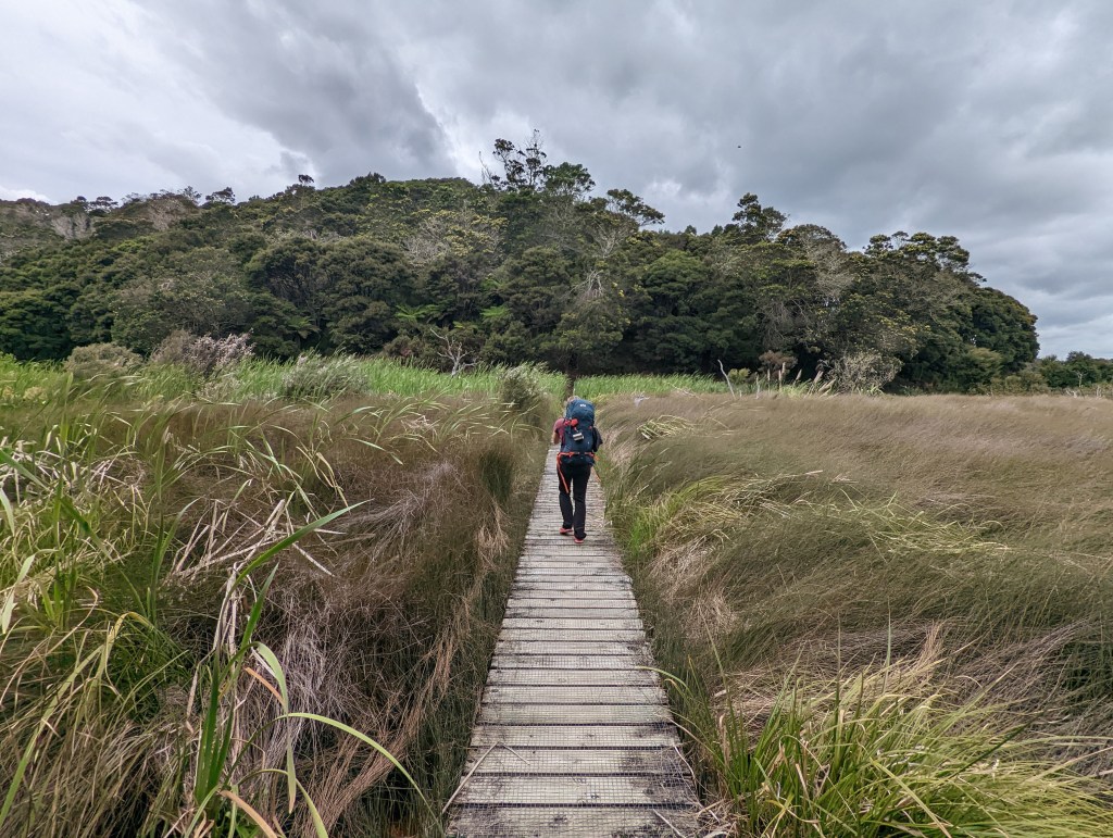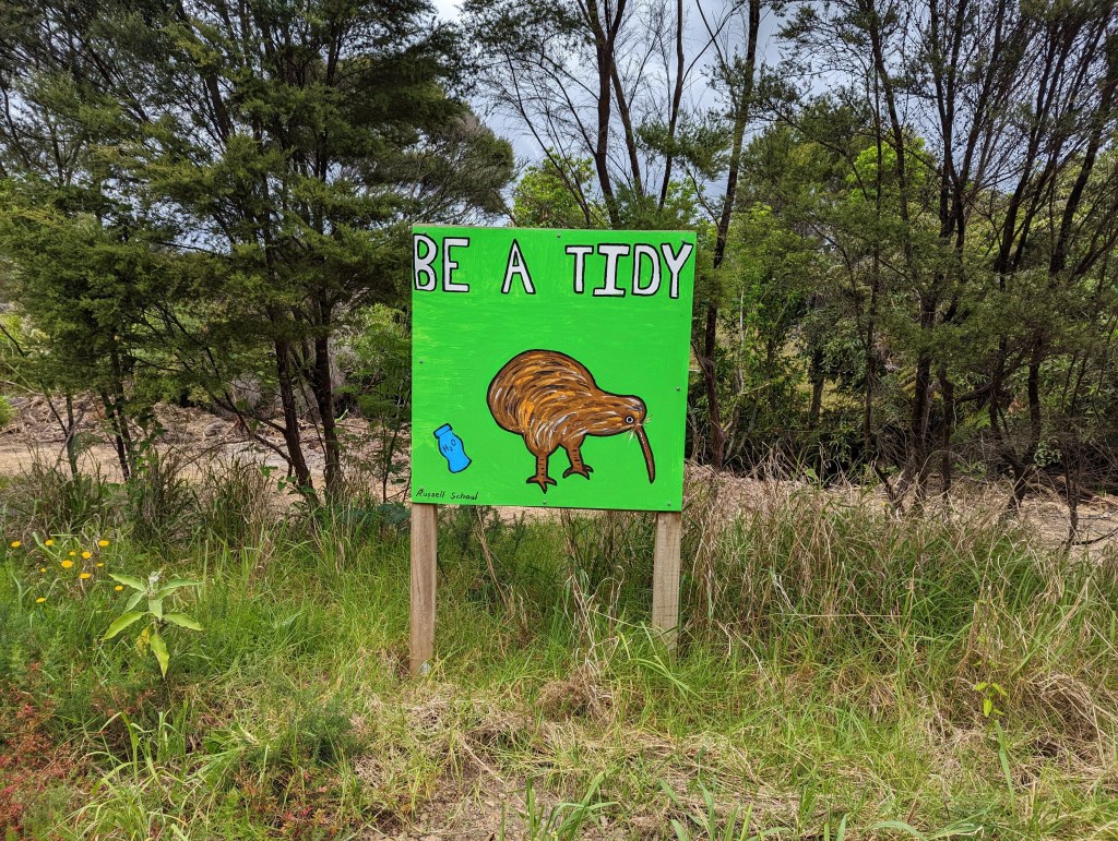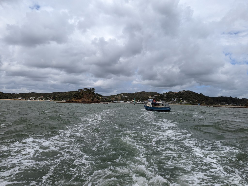 Étant donné que le kayak tombe à l’eau (hehe), on prend le ferry vers 10:50 pour Russell de l’autre côté de la baie pour suivre l’alternative pédestre du TA.