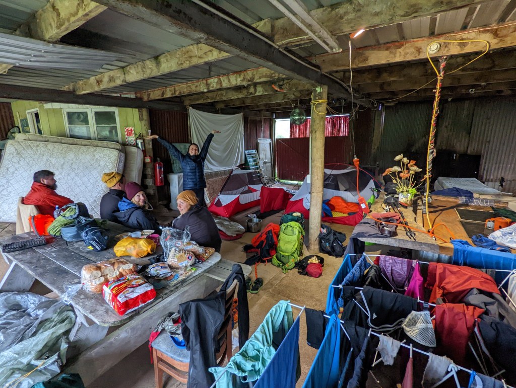 We suddenly find ourselves in a kind of covered but open space, initially set up as a semi-outdoor kitchen and living area but a little abandoned since COVID (the owners seem to want to try to get everything back in shape as soon as possible though). It suits us perfectly! With Mag’ we still decide to open the interior part of our tent to have a minimum of protection against the wind which blows across the place. We expect it to be very cold but at least we will be dry!