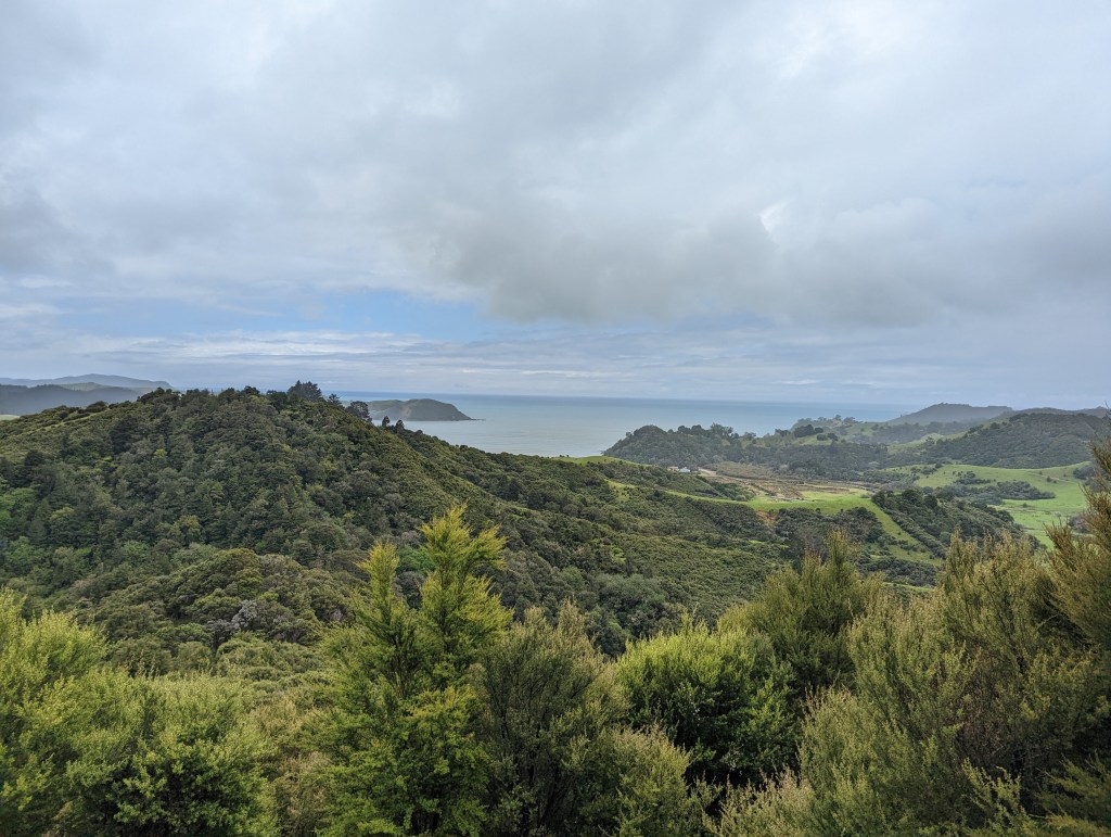 12:20 pause de midi sur une table de picnic au bord de l’océan sous une délicieuse bruine à Helena Bay. Déjà 18km parcourus aujourd’hui ! On les bouffe vraiment comme de rien maintenant ces kilomètres.