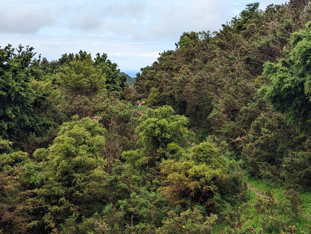 11:15 c’est reparti ! Il fait très humide et lourd. Une petite bruine nous tombe dessus mais en même temps le soleil tape à travers les nuages. C’est un peu bizarre et pas très agréable. Mais, pas le choix, il faut continuer.