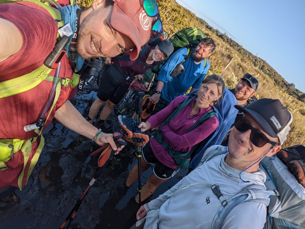 Le propriétaire du camp de cette nuit nous avait prévenu la veille qu’après la traversée dans l’eau il y aurait une “petite” partie dans un peu de vase pour laquelle il nous a recommandé de ne pas remettre nos chaussures.