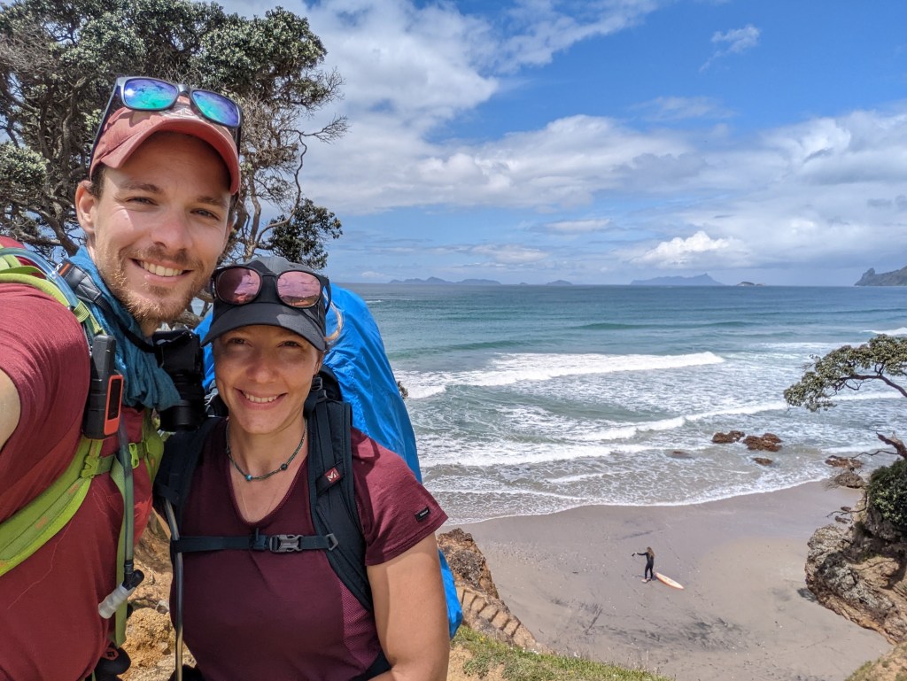 2h30 plus tard, vers 12:00, on retrouve Neele Gijs et Sean en haut de la falaise surplombant la plage et l’océan pour le dîner.