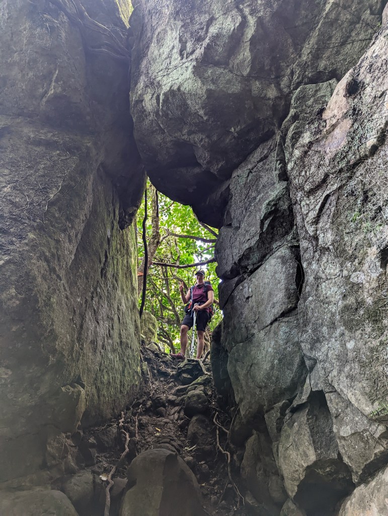 After 1h30 we finally reach the last summit (Mt. Lion) which is unfortunately covered with forest so without much view. We join the whole team there for a short break of about 20 minutes before starting the descent. This one is almost entirely made out of steps and it takes us almost 30min to reach the foot of this small mountain. Going down, we think of those who are going to do the TA in the other direction and we feel sorry for them having to do this climb.