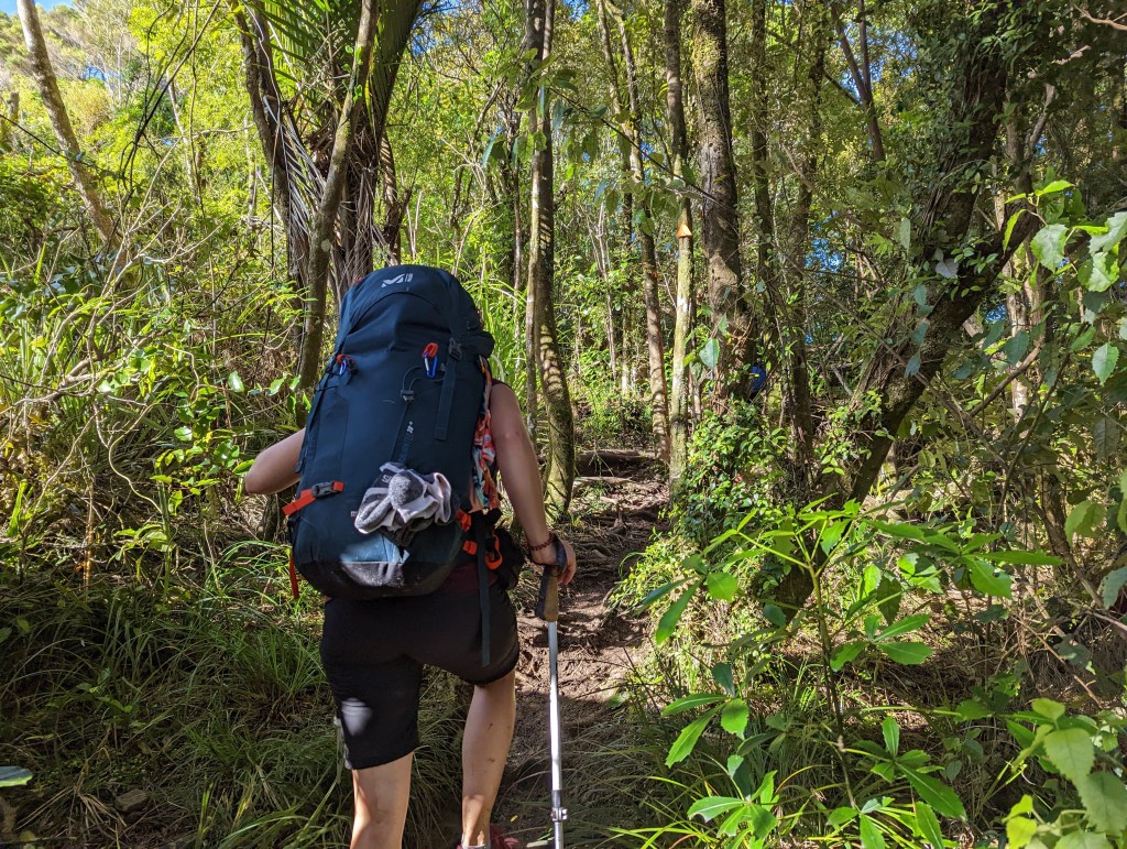 We grit our teeth and in an hour we reach the top of an absolutely fantastic point of view with a 360° panorama of the ocean, the coast and all around! We stay there for about 30 minutes to admire the landscape and take a few photos before continuing to follow the Te Whara Track which runs along the entire ridge of the small mountainous formation.