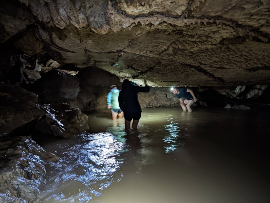 12:00 toute le monde est là et on entre dans la cave et wow! C’est absolument incroyable. Les vers luisants sont super visibles quand toutes les lumières sont éteintes. On se croirait sous un ciel étoilé avec des étoiles aux reflets verdâtres. C’est juste fabuleux. Étant donné la pluie des derniers jours, il y a pas mal d’eau alors on se retrouve à devoir un peu patauger entre les diverses salles mais c’est super fun. Et en plus avec tout ça, cette cave est gratuite ! Ça vallait le petit side trip 🙂