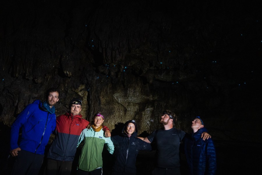 At 12:00 everyone is there and we enter the cave and wow! It’s absolutely amazing. Glowworms are super visible when all the lights are off. It’s like being under a starry sky with stars with a greenish tint. It’s just fabulous. Given the rain of the last few days, there’s a lot of water so we find ourselves having to wade a little between the various rooms but it’s super fun. And on top of all that, this cave is free! It was worth the little side trip 🙂