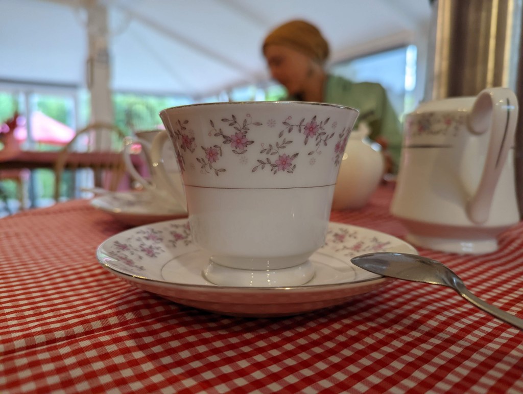 We wake up at around 6:20. For a change, it starts to rain. It’s intermittent like the day before. During a brief lull we go out to fold the tent with a meager attempt to remove the water on the outer layer in order to limit the additional weight of the water. Fortunately, the trail angel lent us a garden tent under which we can leave our belongings sheltered from the rain while we go to have breakfast.