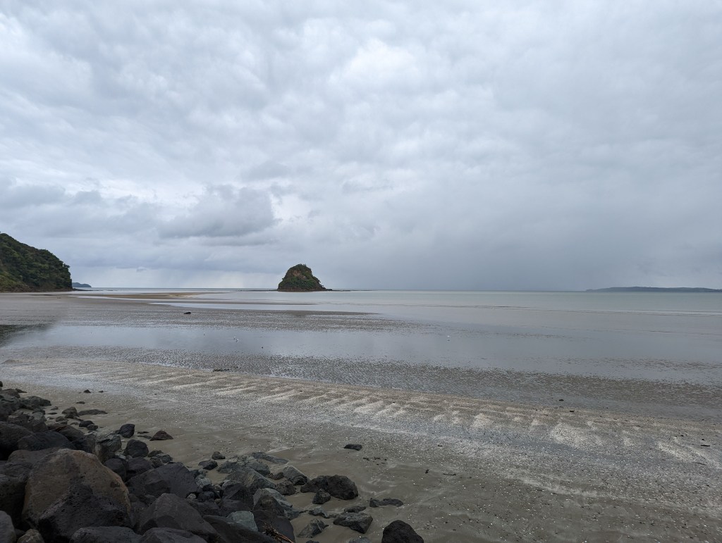 Alors que nous nous installons gentiment, Gijs et Neele, eux, se préparent pour un départ au milieu de la nuit. En effet, demain nous devons traverser un bras de mer à 1h du camp et qui est réputé pour avoir un niveau d’eau très haut même à marée basse. Techniquement deux options s’offrent à nous : passer avec la marée basse de 00:30 ou celle de 12:30. Eux préfèrent faire la traversée de nuit car l’eau devrait être 10cm plus basse que lors de la marée suivante et en plus ils pourraient arriver à Auckland un peu plus tôt. Nous on décide de profiter de la grasse matinée forcée quitte à arriver tard à Auckland…