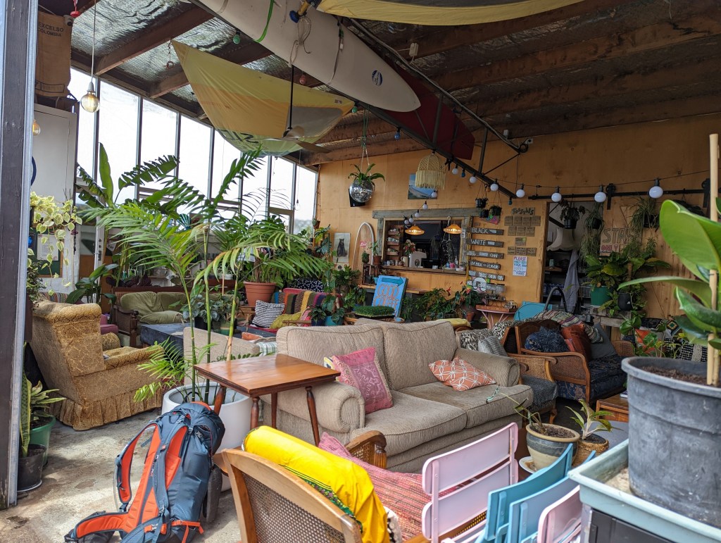 À 11:45 on arrive dans la petite ville d’Orewa où on tombe “par hasard” (merci Google) sur le superbe et délicieux Drifter Coffee au style super original et convivial. On y prend de quoi manger et d’excellents chai lattes. À un moment la manageuse s’approche de nous et nous demande si nous sommes passé par The Farm pendant notre trek. On lui répond par l’affirmative et elle nous annonce que ce sont ses cousins qui tiennent le lieu. C’est petit la Nouvelle-Zélande haha
