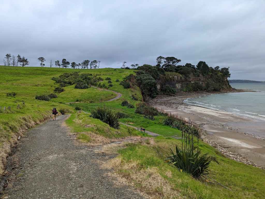 Vers 13:00, le temps de se rhabiller et de manger quelques snacks, on se met en route pour le dernier tronçon de 29km jusqu’à Auckland pour enfin clore notre boucle du Far North. Tout le monde a juste envie de terminer cette partie que chacun marche aussi vite que possible. Ainsi notre petit groupe de sépare petit à petit.