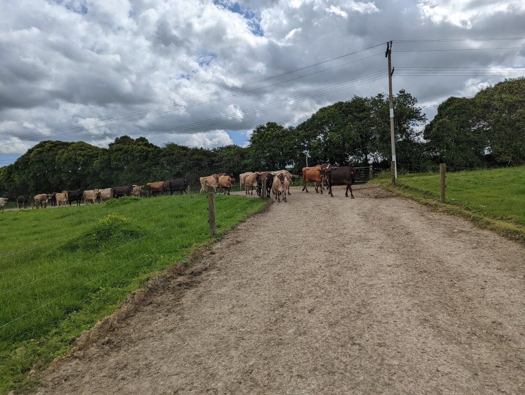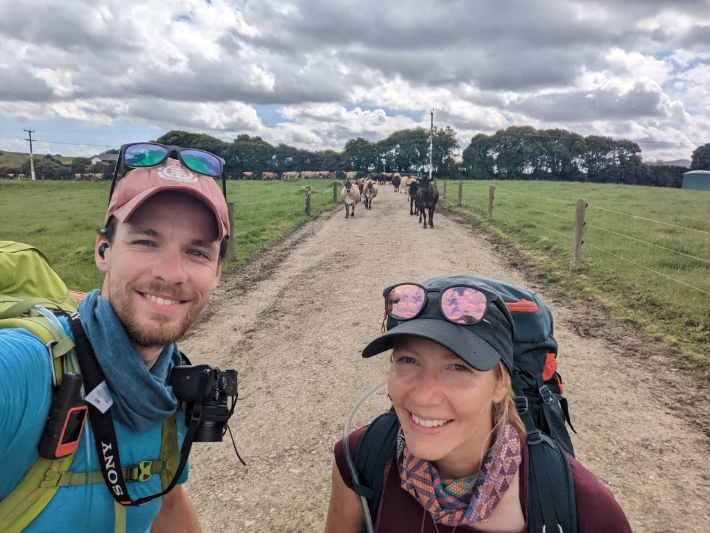 On se met en route vers 8:15 et en passant par la sortie du B&B on a l’occasion de donner quelques-uns de nos restes de petit déjeuner (des pelures de banane) à Dottie the Donkey. Chose qui énerve les cochons jaloux juste à côté hahaha. Aujourd’hui, le ciel est couvert mais il ne devrait pas (ou très peu) pleuvoir.