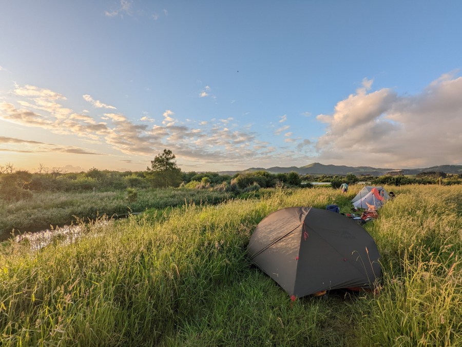 Vers 18:30, après avoir contourné ces enclos et cette rivière, on se pose en camping sauvage sur une digue entre la rivière en crue et des pâturages. Neele et Sean décident de continuer jusqu’à la prochaine ville, Mercer 5km plus loin, pour planter la tente dans le jardin d’un motel du coin. Gijs reste avec nous et nous sommes aussi rejoint par Kat et Max. On lance rapidement la cuisine avant de vite se mettre au lit avec le soleil couchant. Une longue nuit nous fera beaucoup de bien après tous ces kilomètres avalés.