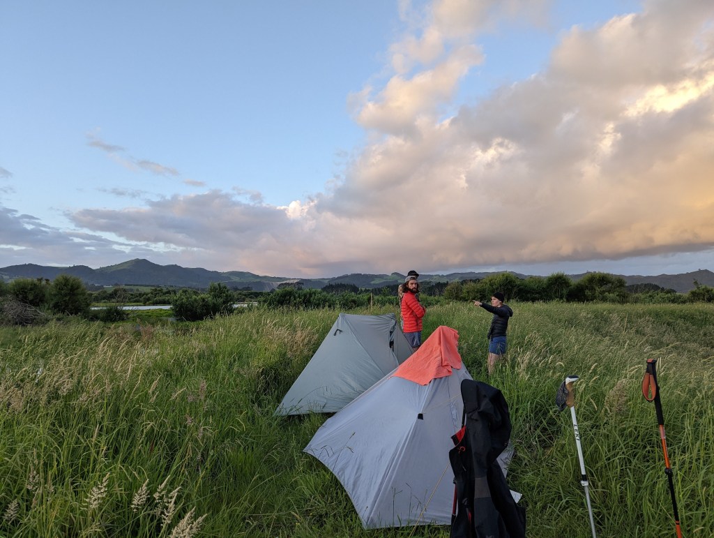 12:30 on est raide et on s’arrête net, là où on est. On est à peu près au milieu de la Mt. William Walkway. La montée jusqu’à là était bien rude sous un soleil de plomb et sape un peu le moral. Surtout après les kilomètres effectués la veille… Mais on se fait plaisir avec la nourriture pour se remonter le moral : wrap au saumon, avocat et fromage bleu. Fancy fancy hehe. On fait d’ailleurs des envieux quand Kat et Max nous rattrapent.