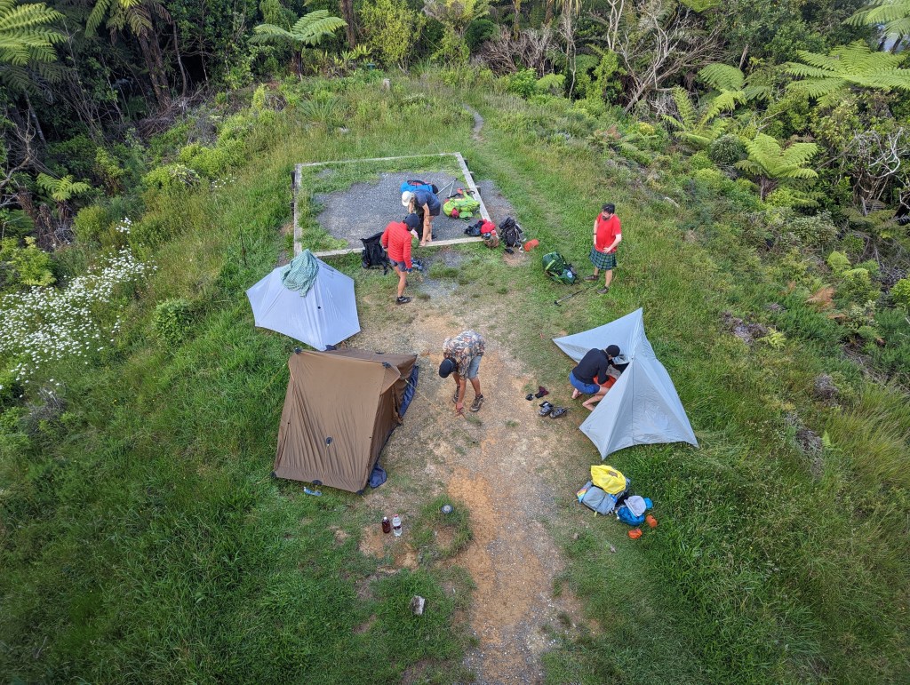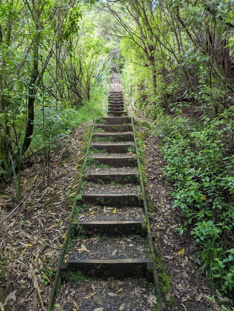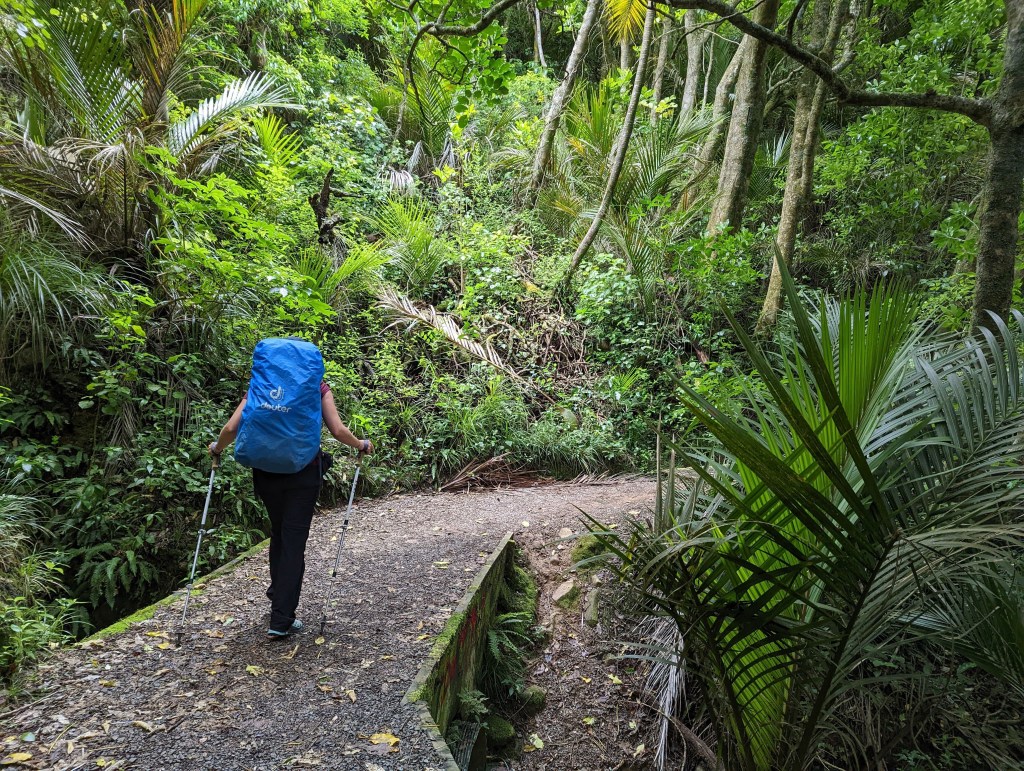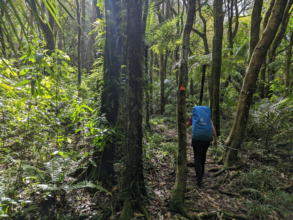 À 15:00 on arrive au pied de la Hakarimata Range, qui est une petite chaîne montagneuse couverte d’une jolie forêt. On y retrouve Max, Roxann et Jamie qui font une pause avant de se lancer dans la forêt. Étant donné qu’on est déjà assez bien reposé, Aaron et nous commençons la montée avec Mag’ qui mène la danse 😊. Après une 20aine de minutes on fait un détour pour voir un très vieux et énorme Kauri d’environ 1000ans ! Il est surnommé “The last Kauri” car il est inexplicablement le seul a avoir échappé à la coupe massive des Kauri lors du 19ème siècle. Aaron estime que c’est l’occasion de partager une bière qu’il a emporté avec lui pour notre plus grand plaisir. Alors qu’on fini notre détour on retombe sur Roxann avec qui on continue la traversée de la forêt.