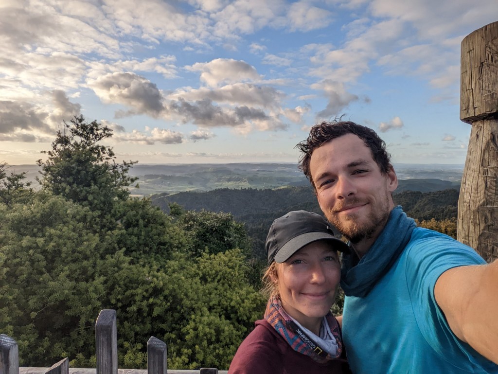 At 3:00 p.m. we arrive at the foot of the Hakarimata Range, which is a small mountain range covered with a pretty forest. We find Max, Roxann and Jamie taking a break before heading into the forest. Since we are still quite well rested, Aaron and us start the climb with Mag’ leading the way 😊. After about 20 minutes we take a detour to see a very old and huge Kauri tree about 1000 years old! It is nicknamed “The last Kauri” because it is inexplicably the only one to have escaped the massive cutting of Kauri during the 19th century. Aaron decides that it’s the perfect opportunity to share a beer he brought with him for our greatest pleasure. As we finish our detour we fall back on Roxann with whom we continue crossing the forest.