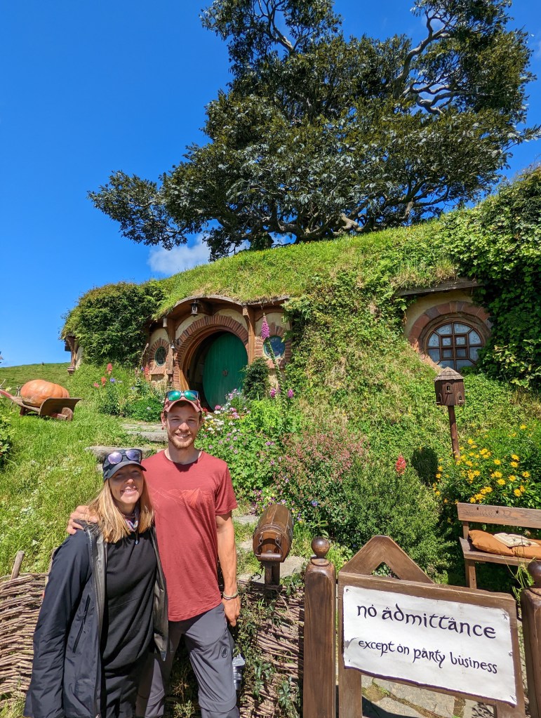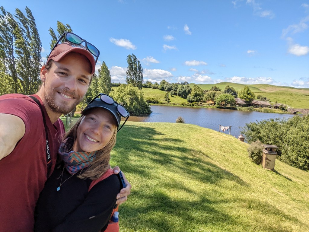 Réveil à 7:30 histoire d’être prêt à partir vers 8:45 car à 10:00 on a notre visite de… Hobbiton!!! On se réjouit tellement ! D’autant plus que la météo prévue est excellente après tous ces jours pourris de pluie.