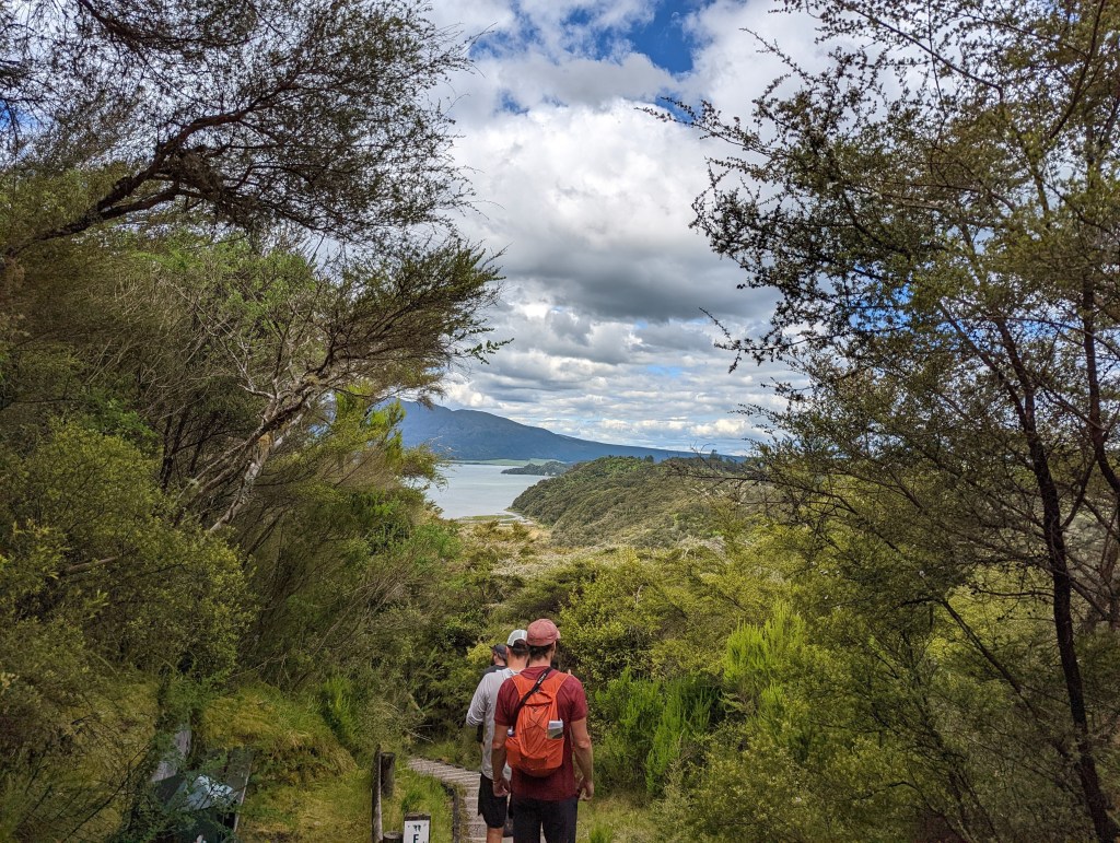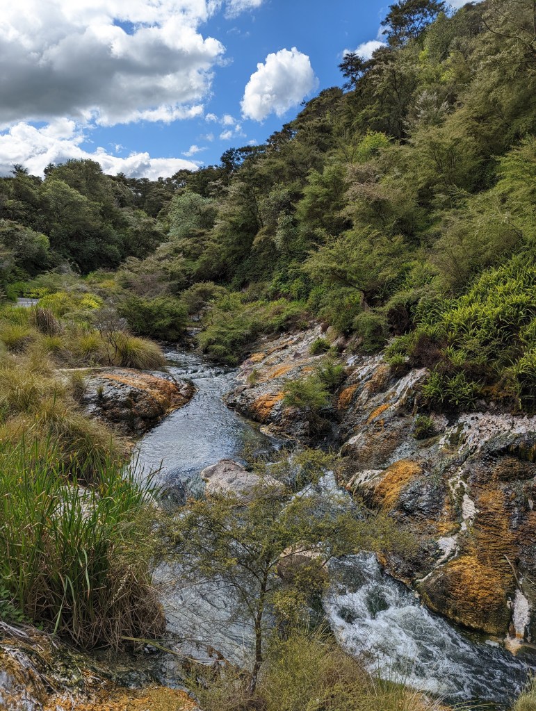 Once out of the park, we set off to join our friends who stayed back in Rotorua to visit the Volcanic Valley. A place with an intense history full of eruptions and with sulphurous hot water lakes. We go through it quickly because we are close to closing time. As a result, Sean, who holds the small booklet describing the different important places, takes on the role of guide and reads the written information to us quickly 😆 We know in which area he can convert if necessary 😜 But overall this valley didn’t feel as crazy as its description might suggest.