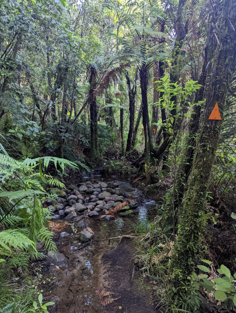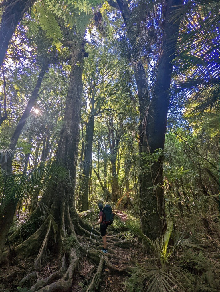 Nous y restons une bonne heure avant d’entamer les 5 km de “descente” (il y avait quelques bouts de montée bien raide entre deux 😢 ) le long du track au meilleur nom rencontré jusqu’à présent : le Hihikiwi Track.