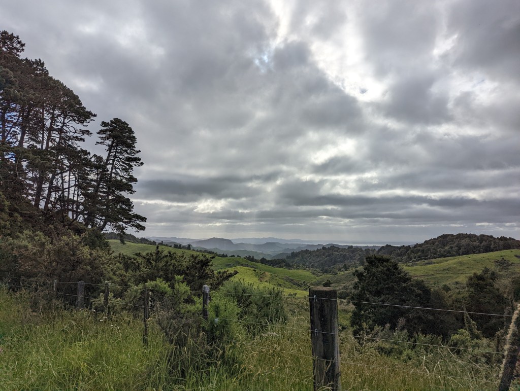 Vers 10:50 on arrive au sommet du Mount Pirongia à 959m d’altitude où se trouve une structure d’où on peut apercevoir au loin dans la panorama à 360° qui s’offre à nous les Mt. Ruapehu, Mt. Tongariro et Mt. Ngauruhoe (a.k.a. Mt. Doom) ! Nous traverserons ces montagnes d’ici une bonne dizaine de jours normalement (c’est à 330km d’ici).