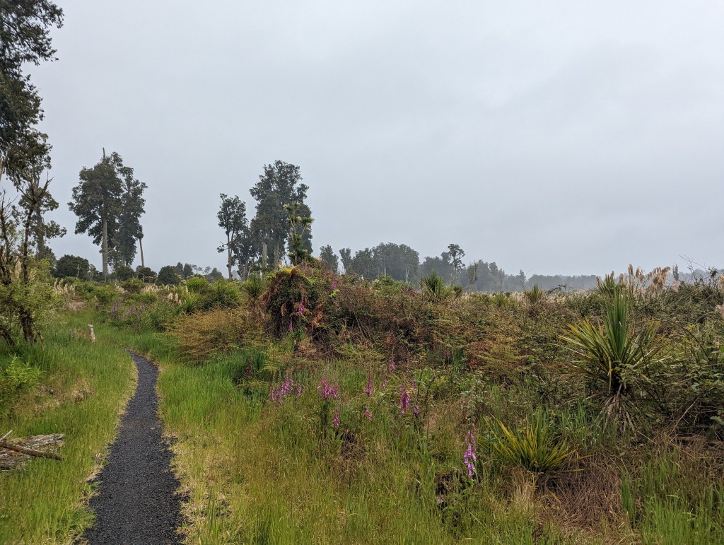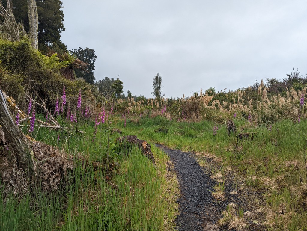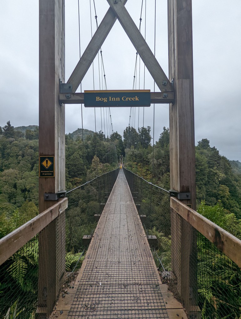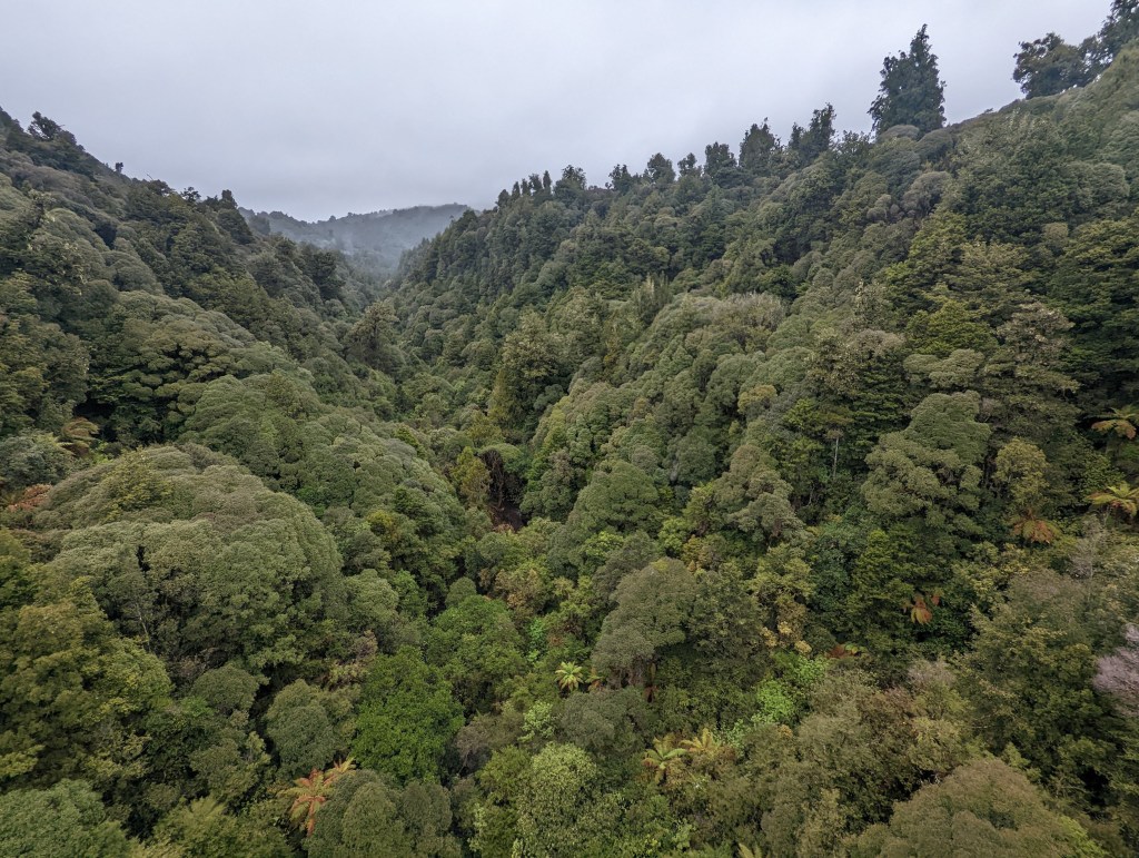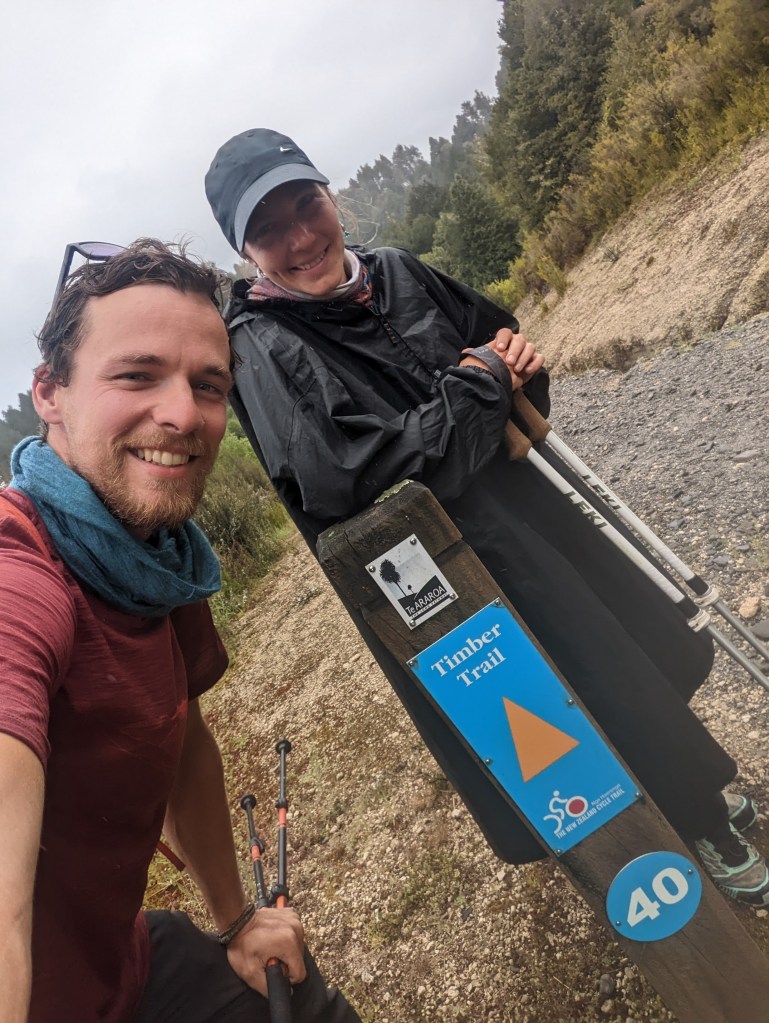 En effet, nous commençons aujourd’hui le Timber Trail qui est un itinéraire d’environ 85km bien entretenu et praticable à pied comme à vélo. Deux compagnies proposent des services de location de vélos pour faire le trajet en deux jours avec un arrêt au milieu où se trouvent 3 options de logement (un camping basic gratuit, un camping deluxe et une lodge très deluxe). Ces compagnies proposent aussi en option d’emporter les sacs des cyclistes à ces camps. Du coup on s’est dit qu’on pouvait leur filer nos sacs et marcher les 40 premiers kilomètres de trail pour éviter d’avoir à louer des vélos assez chers.