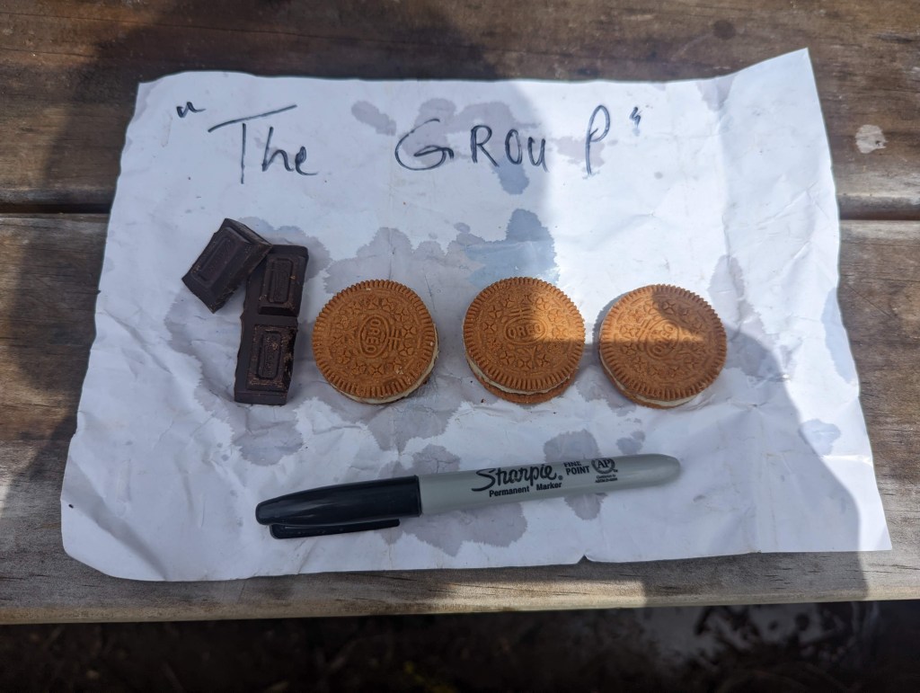 Par hasard, un abri se trouve quasiment exactement (à 300m près) aux 1000km et dans lequel on célèbre l’exploit en se mettant à l’abri de la pluie passagère. J’ai aussi enfin l’occasion de donner mes sandwichs au peanut butter and jelly à nos deux marcheurs qui sont absolument ravis 😊