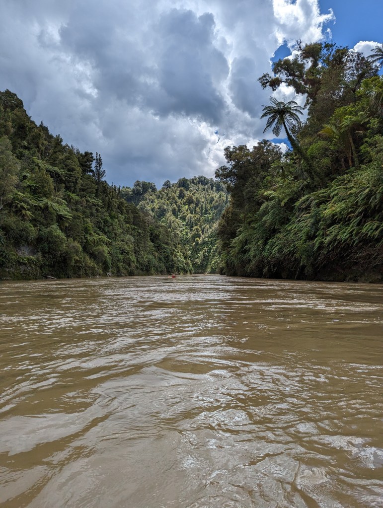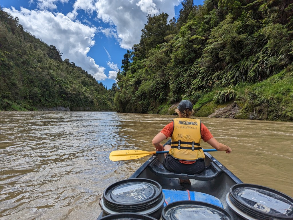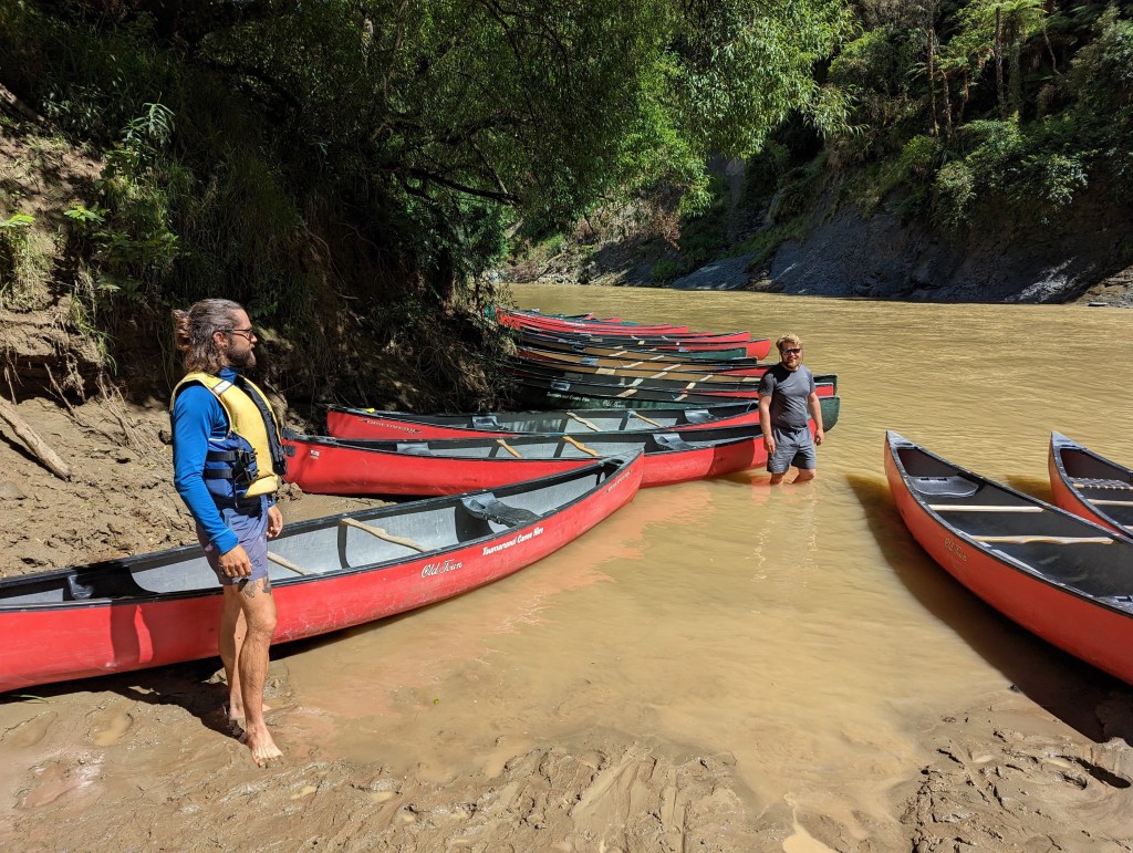 On arrive du coup vers 10:00 au village de Whakahoro (population : 8) et son camping d’où partent la plupart des sorties de canoë. À ce moment-là, notre pilote qui est le fils des propriétaires de l’entreprise file regarder l’état de la rivière pour savoir si on va devoir passer la nuit au camp ou si on va pouvoir y aller aujourd’hui même.