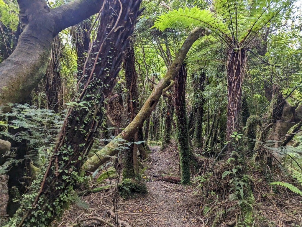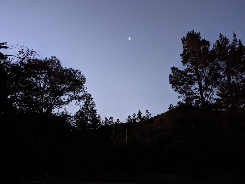 On mange notre souper puis on aperçoit un bel oiseau dans un buisson. Et c’est là qu’on commence à discuter avec la femme kiwi, Pip, qui semble bien connaître la faune locale et nous donne son nom : le Kereru, une sorte de pigeon sauvage qui a la réputation de ne pas être conscient de sa taille et de son poids car il a tendance a se poser sur des branches beaucoup trop fines pour lui 😂.