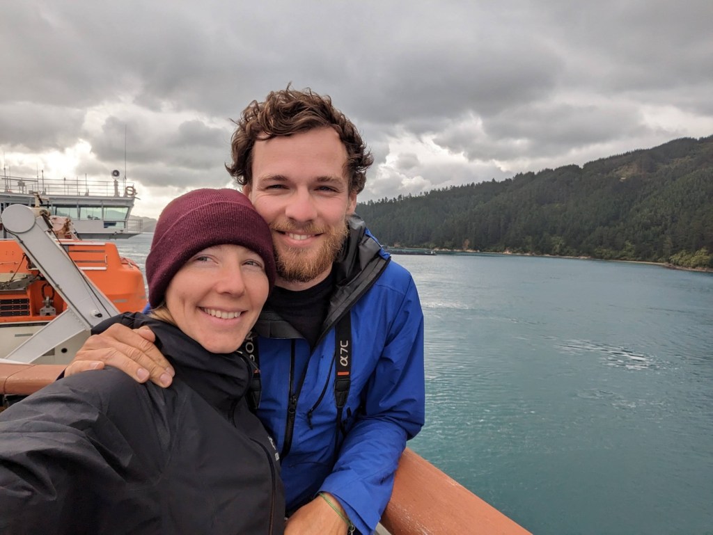 Vers 14:00 on quitte l’hostel pour aller prendre une shuttle qui nous emmène jusqu’au ferry qui, lui, nous fera traverser le détroit de Cook pour l’Île du Sud !!