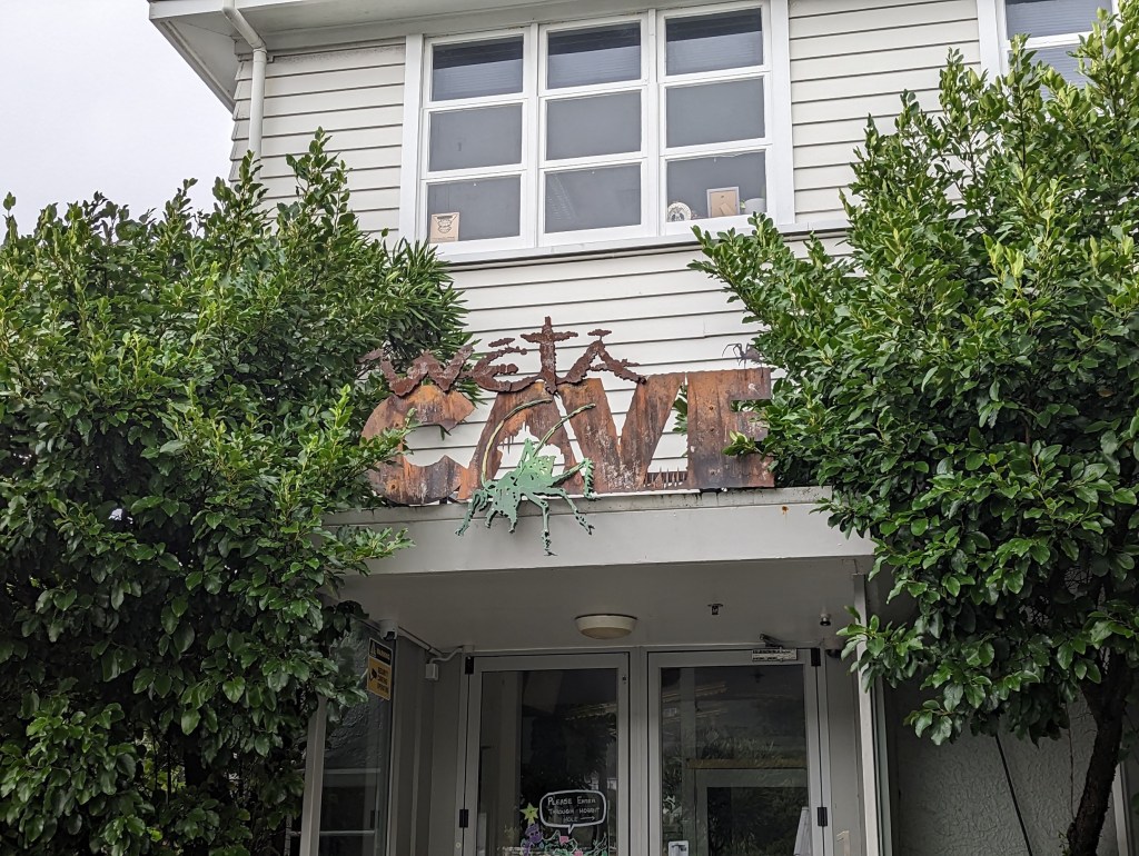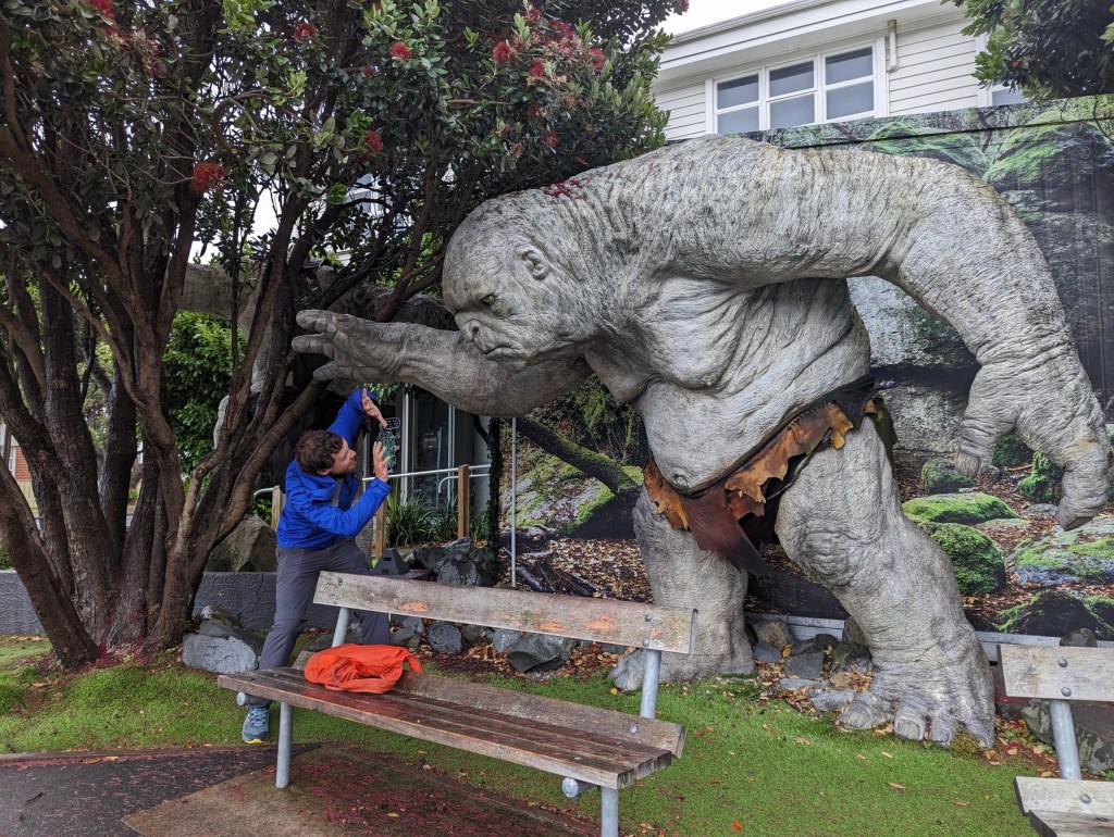 Aujourd’hui on visite la Weta Cave des studios Weta Workshop ! On arrive à l’ouverture. On a tout juste réussi à avoir des tickets pour la première visite de la journée car toutes les autres heures étaient bookées. On failli louper ça !!