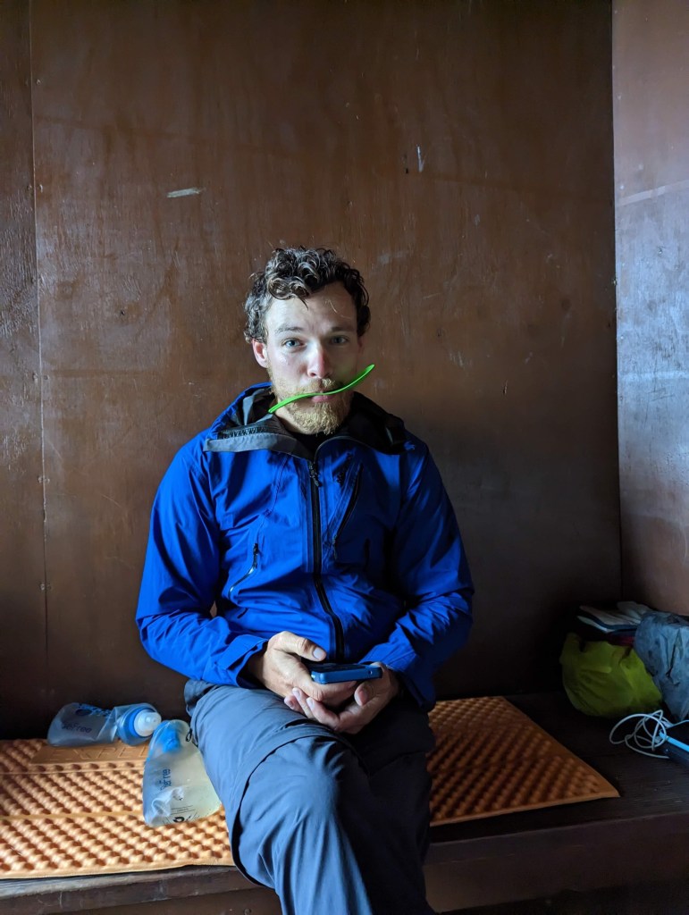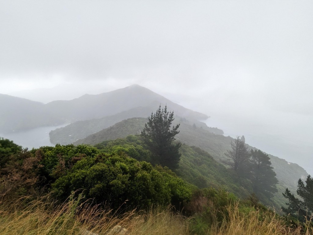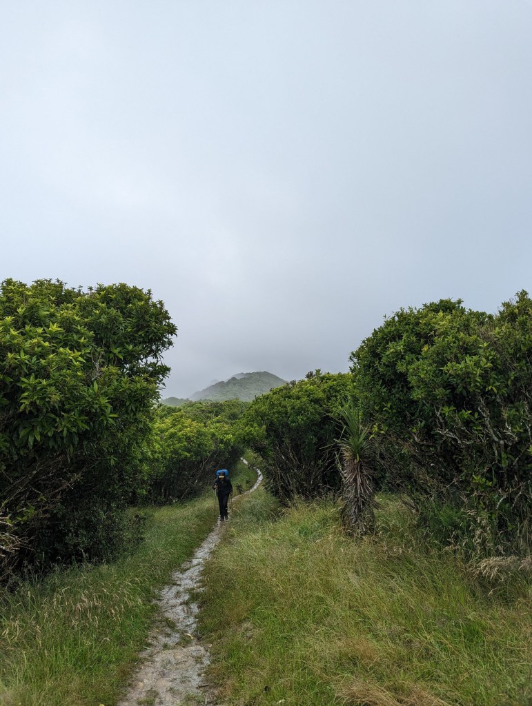Unfortunately the landscapes are mostly covered by low clouds, but anyway we don’t really want to hang out in the rain. So we go for it with music or podcasts in our ears. We don’t stop to eat either because there is no shelter on the way to rest for a while except Camp Davies which was supposed to be our final destination for today 😅