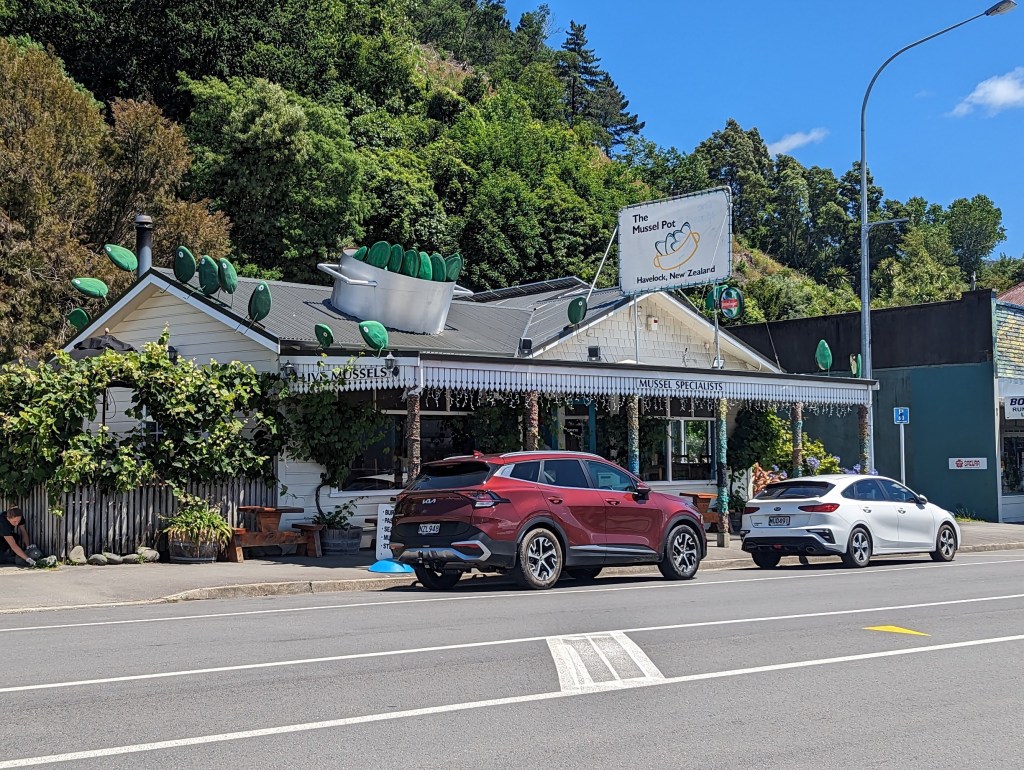On termine ensuite la marche du jour vers 12:30 à Havelock pour le lunch avant de tenter de faire de l’auto stop jusqu’à Nelson. Il s’avère que cette ville est la capitale mondiale de la moule à coquille verte ! Alors on se doit d’aller en goûter et pour ce faire on va dans un resto judicieusement nommé The Mussel Pot (La Casserole à Moules). On se prend une sorte de plat dégustation à partager dans lequel plein de moules préparées de différentes façons sont présentées. Et tout est vraiment délicieux ! On retombe aussi dans ce resto sur Odine et Stefano 😄.