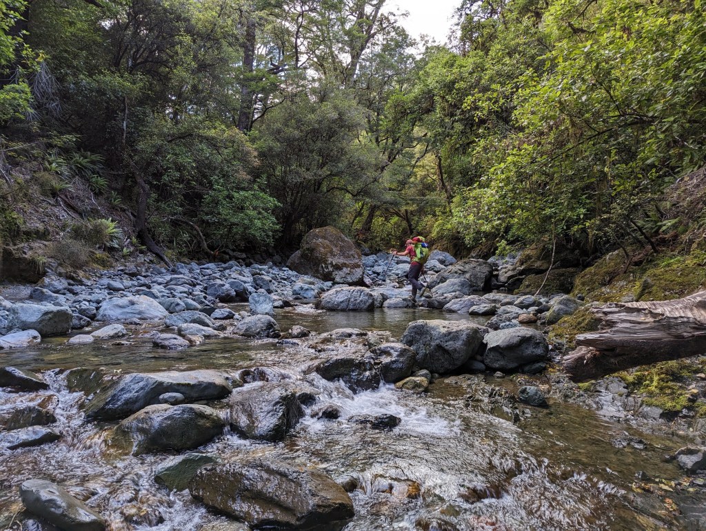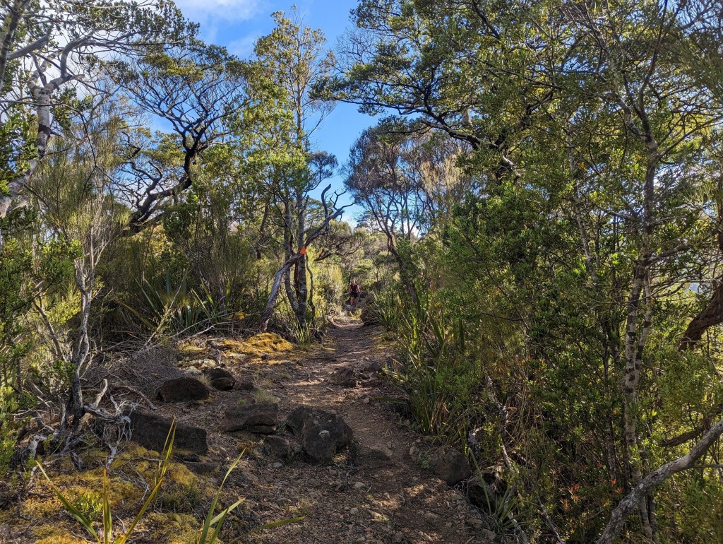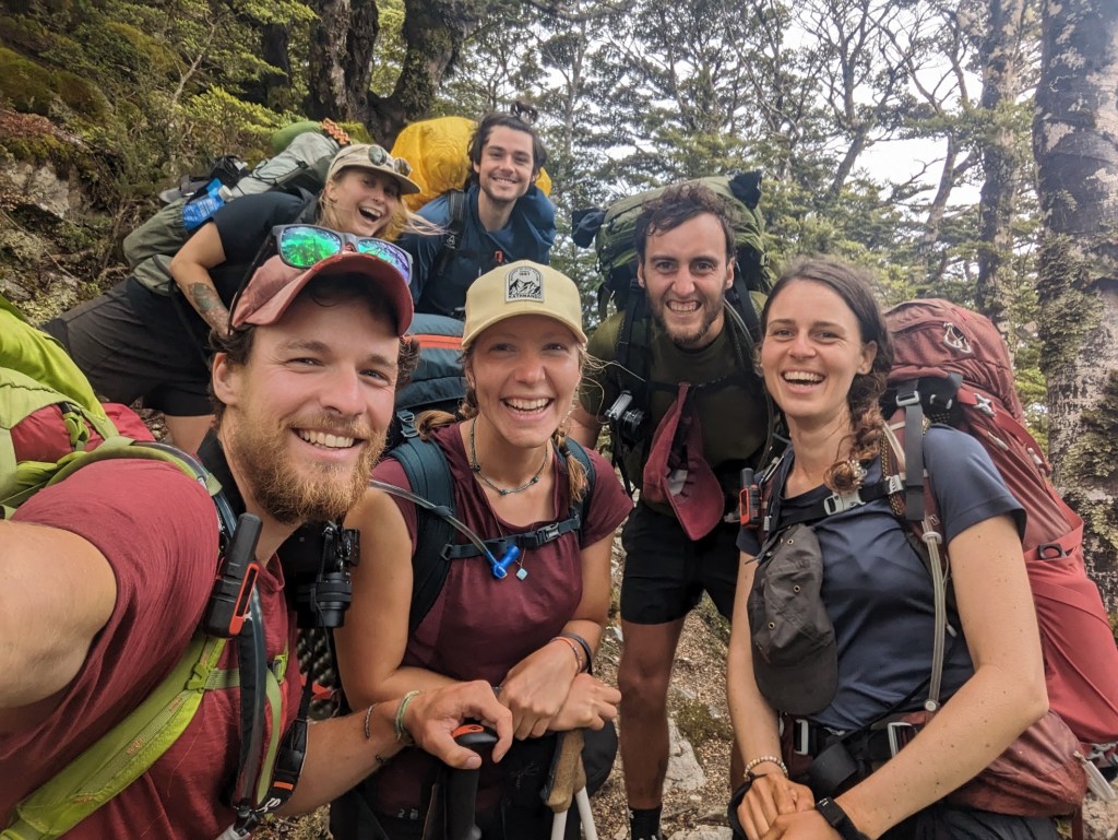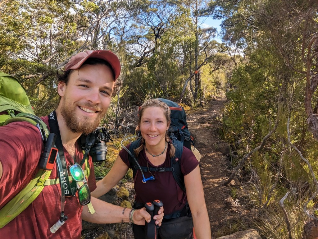 Dans la descente de ce dernier, on croise enfin le couple de NOBOs (NOrth BOunds: ceux qui suivent le TA dans le sens opposé à nous, du sud au nord), Nolwenn et Yannick, qu’on avait rencontré un mois et demi plus tôt à Auckland lorsqu’on avait déposé des affaire chez Denis. On avait rapidement discuté via Instagram pour estimer notre date de rencontre. C’était vraiment une bonne surprise ! On se partage des tips pour la suite de nos voyages respectifs avant de nous séparer à nouveau.