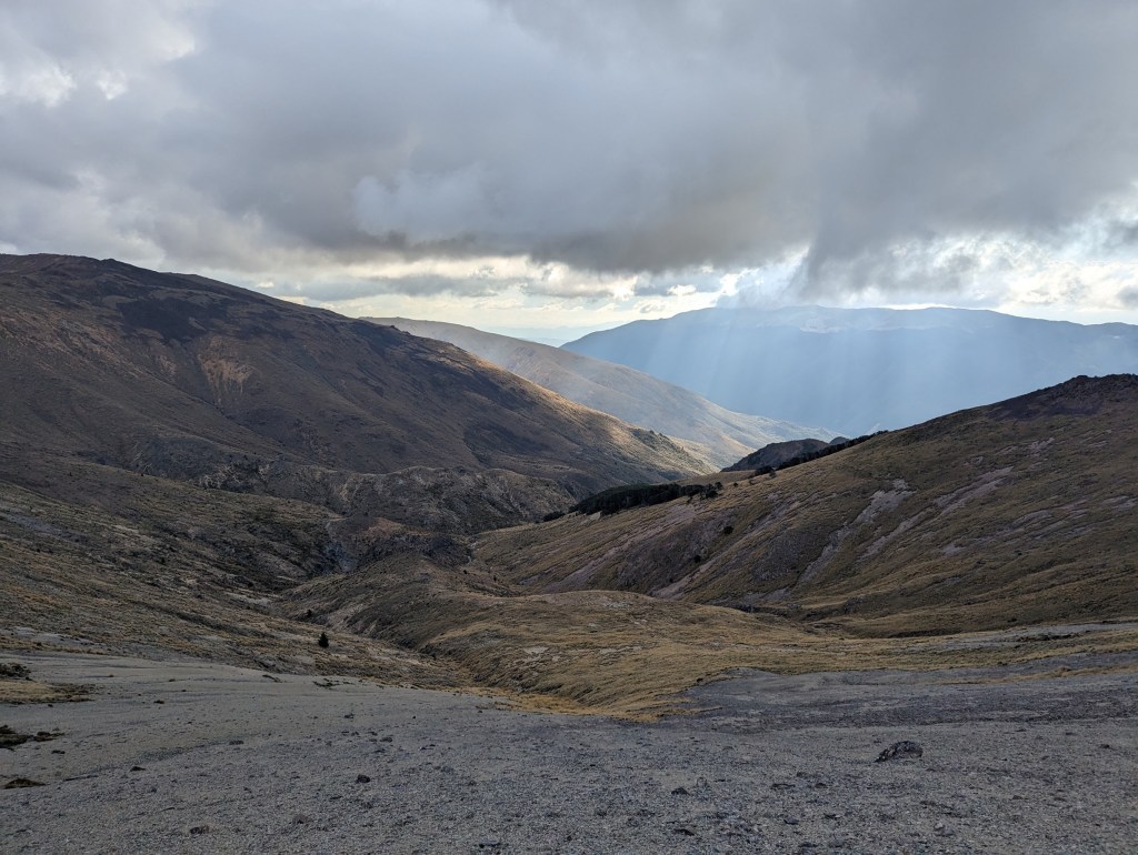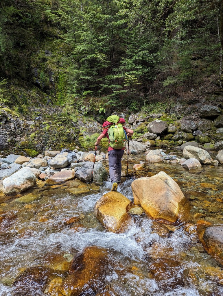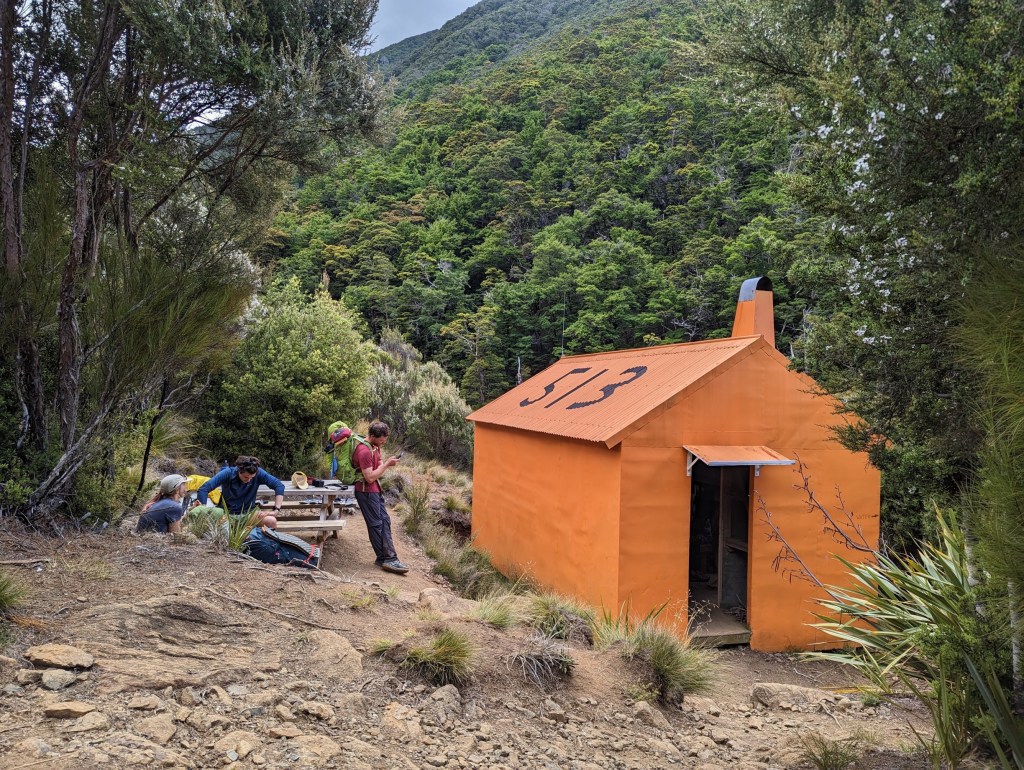 Because of this super steep path, we arrive a little over two hours later at the hut. It’s in a beautiful location at the bottom of a steep valley with a river running right beside it. We take this opportunity to fill our water bottles because our previous accommodation was dry.