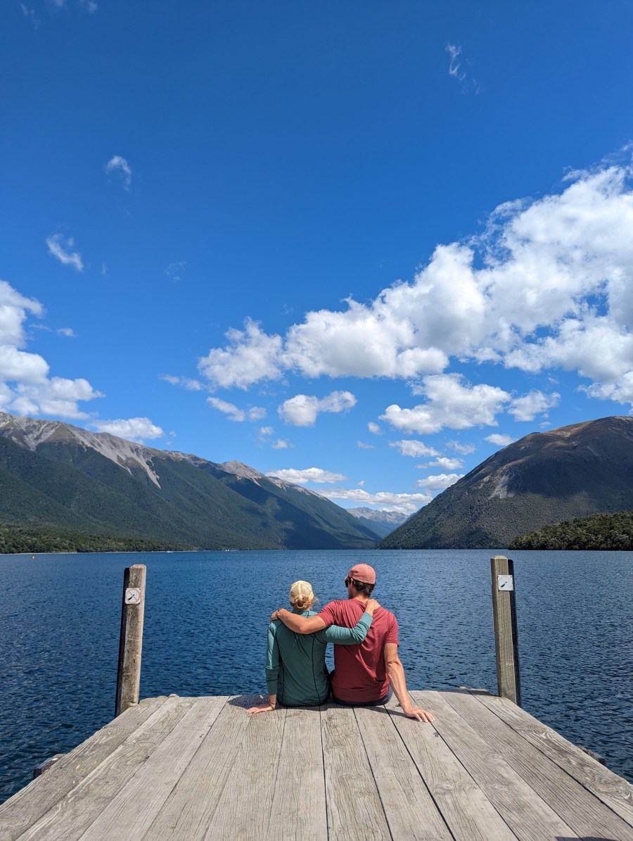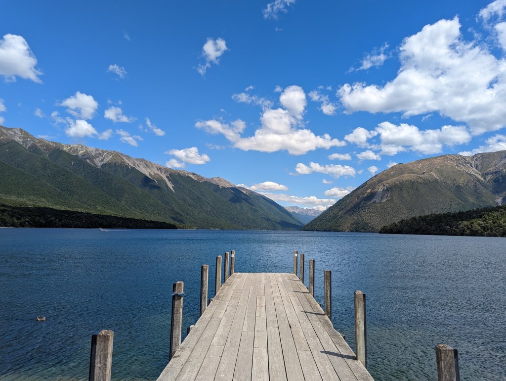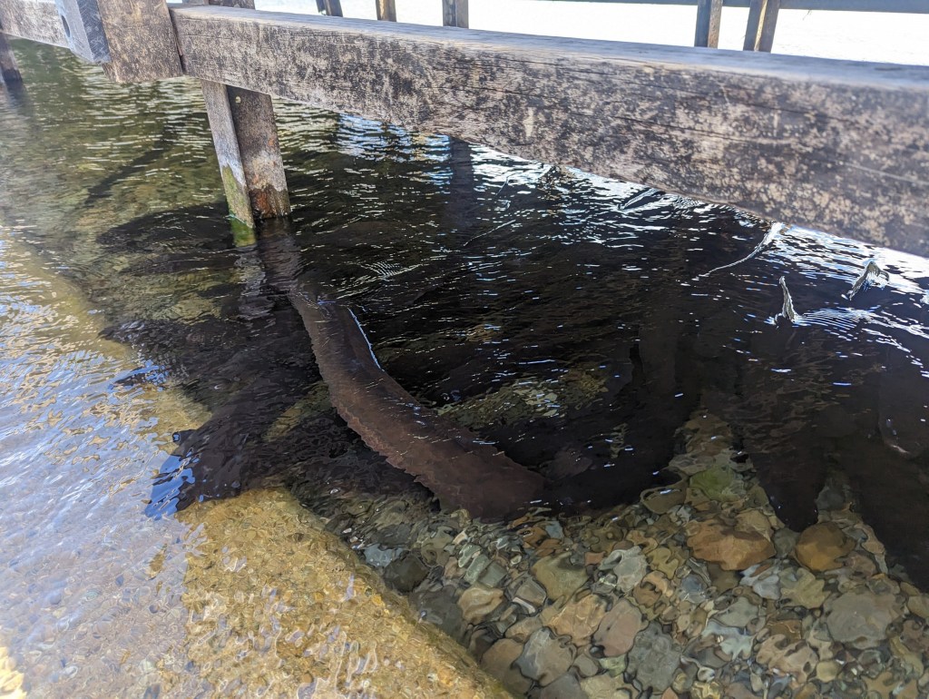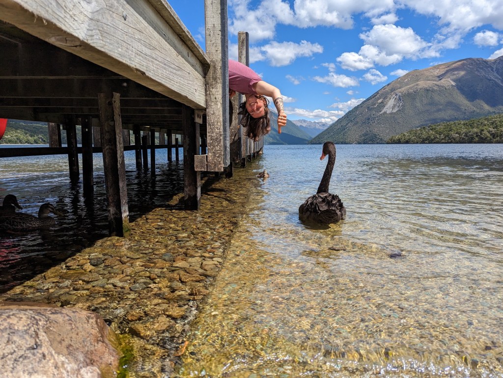 Après ça, on va se balader au bord du lac pour quand même profiter du beau temps et de la vue avec une prise de photo bien touristique sur un ponton 😁. On découvre aussi que sous ledit ponton on peut trouver toute une horde d’anguilles s’abritant du soleil. Elles sont tellement calmes qu’il est même possible de brièvement les toucher. C’est vraiment très gluant 😅