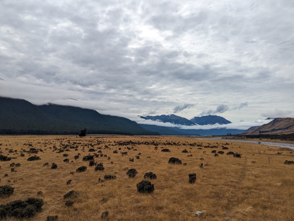 Une dernière heure et nous voilà arrivés à notre hut du soir : Hurunui No.3 Hut. L’agencement des lits est assez particulier car il y a deux série de lits superposéss de non pas 2 mais 3 étages ! Les premiers niveaux sont déjà occupés par une famille d’allemand mais heureusement on arrive à se caser au second étage.