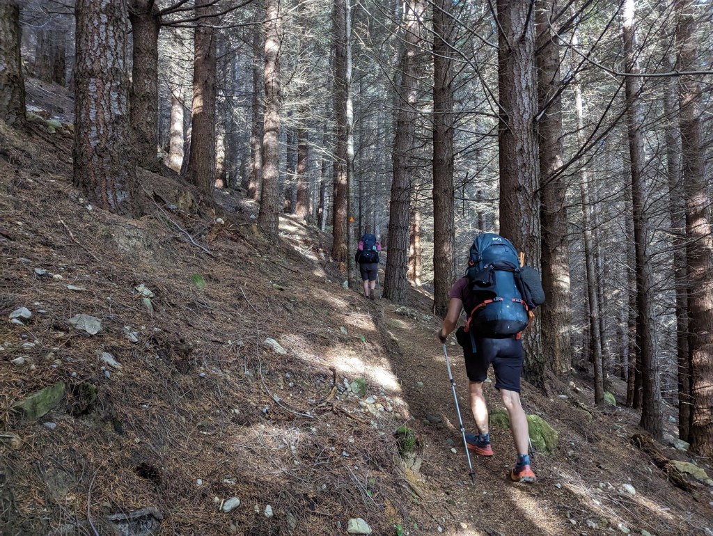In just over 4 hours, we cover the first 11 kilometers of the day and reach West Harper Hut at lunchtime. It’s somewhat slow but it’s mostly the morning climb that slowed us down. The hut is extremely rustic and unfortunately in a sorry state with half of its beds unusable… We’re quite happy we don’t have to stay in that one.