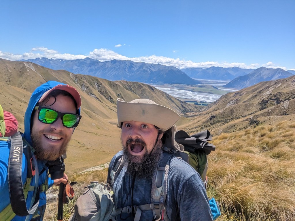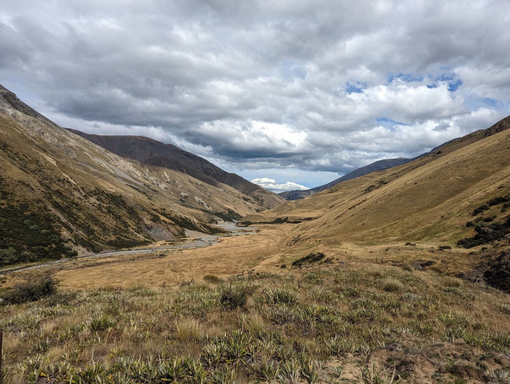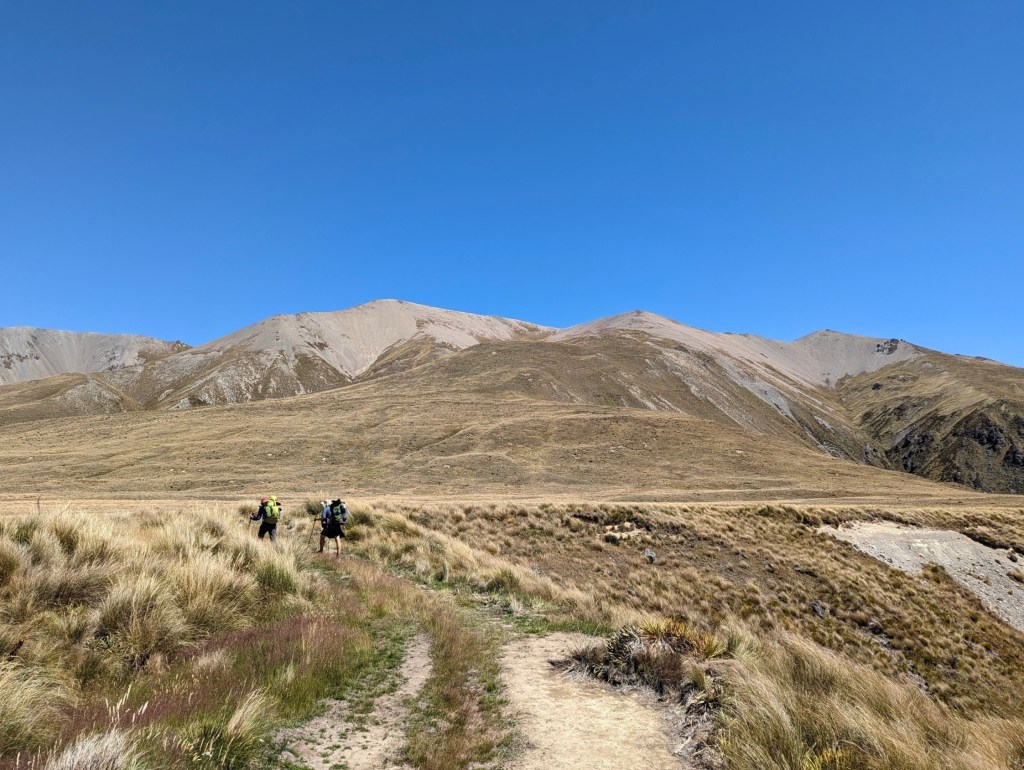 Alors qu’on discute tous ensemble, Roxann constate qu’elle a perdu sa balise gps 😬 probablement au sommet du col 10km en arrière… Étant donné le prix et l’importance de l’objet, elle décide de faire demi-tour en ne prenant que son matelas et sac de couchage avec l’idée de retourner au col puis de dormir à la sympathique première hut qu’on a visité. Elle nous quitte alors frustrée d’elle même alors que le soleil commence à se coucher…