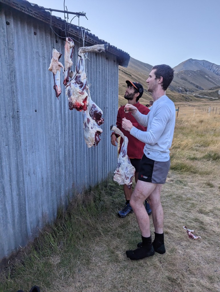 Alors que la nuit tombe pour de bon, ils retournent chercher leur second mouton qui était tombé en bas d’une pente ce qui rend difficile de ramener l’animal à la hut. Ils le préparent alors sur place en découpant ce qu’il peuvent… 🙃