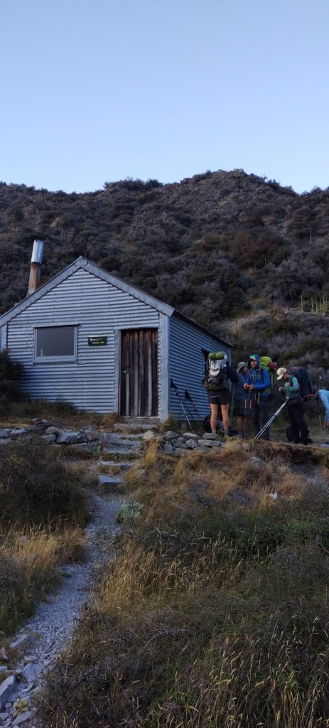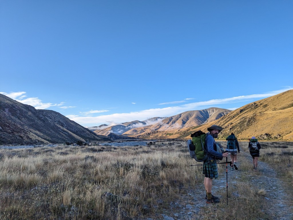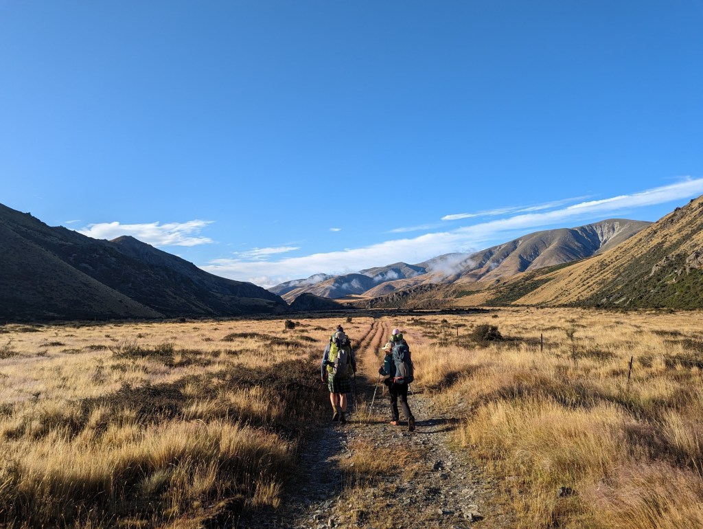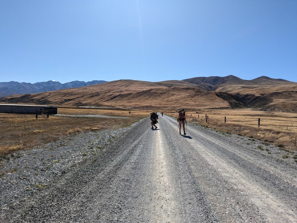 Roxann and Aaron join us at the hut at around 8:15 to leave together š. It is once again sunny and cool this morning. The first half today is on a good gravel road that is super nice to walk on. In addition to that we are gifted a spectacular view of our surroundings.