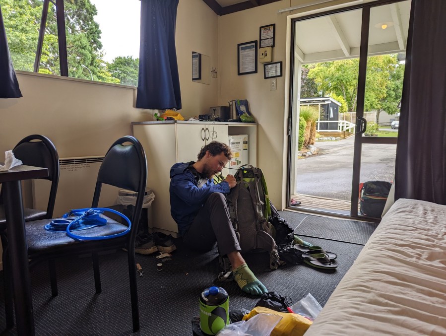 After a quick detour to the supermarket, it’s back to the cabin to continue doing nothing 😋. Meanwhile, Fleur reads a message in a WhatsApp group that a guy is going to drive his car to the start of the trail tomorrow around noon. Could this be the magic thumb in action? The conversation is very slow because the guy takes 1000 years to answer but for now it’s promising.