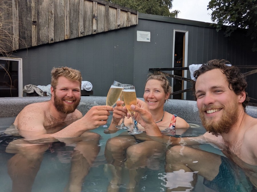 Finalement, aucun regret d’avoir pris une chambre ici. Il pleut des cordes dehors. Et de toute façon, on est jamais contre prendre des zeros surtout si un hot tub est à disposition ! 😁