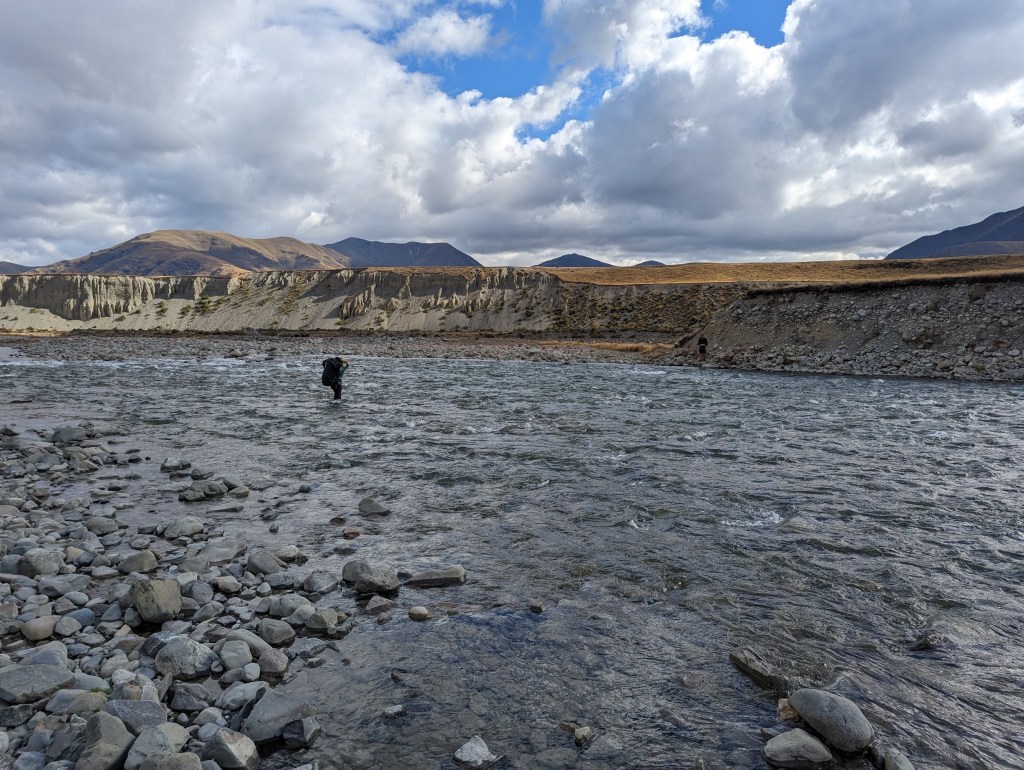 It is now 3:45 p.m. and we are a little less than 6km from the Ahuriri River which is a big river that we have to cross. Since we already have wet feet, might as well make the crossing today so that we won’t need to do it first thing tomorrow.